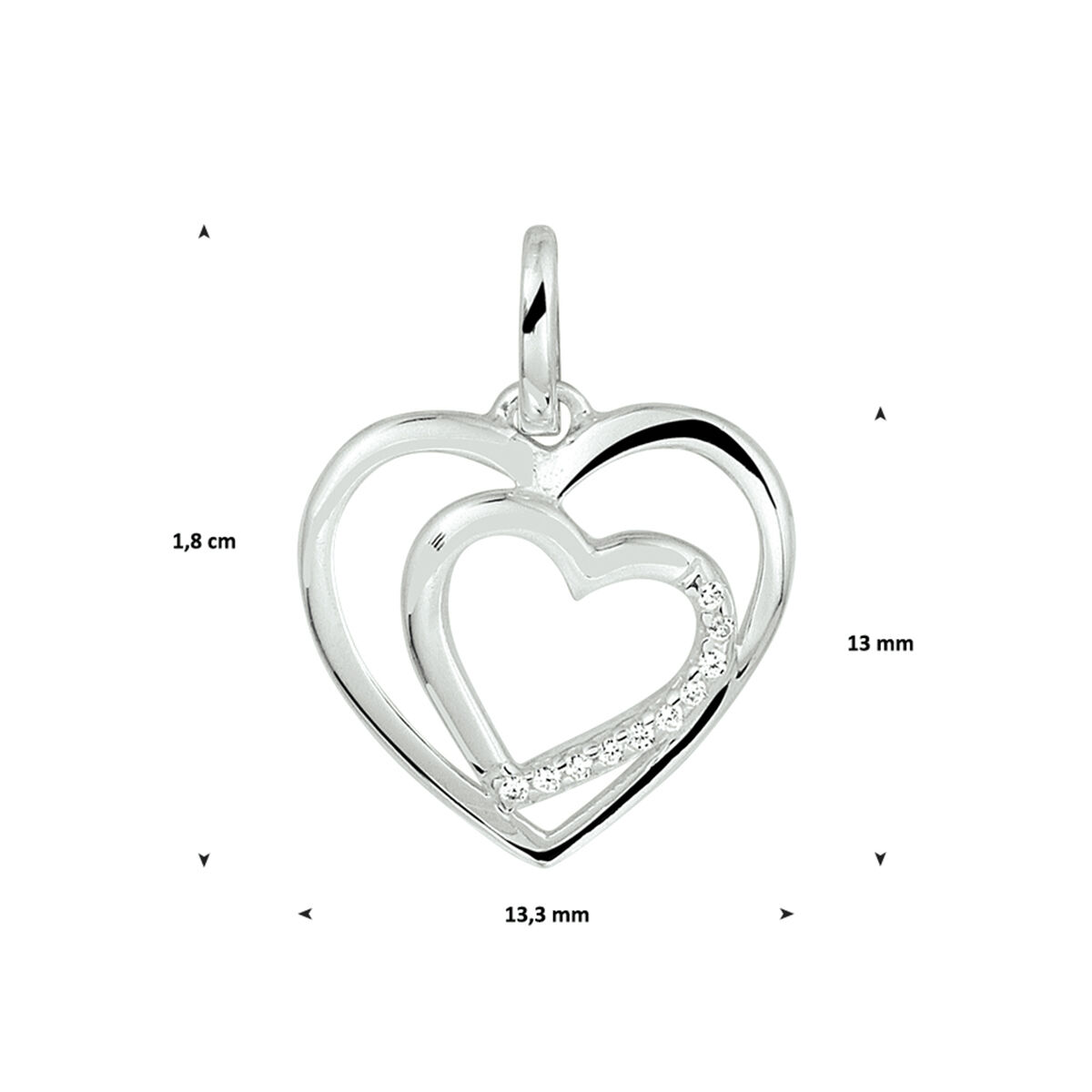Romantische gerhodineerd zilveren hart hanger met een afmeting van 13x13.3mm en een totale hoogte van 18mm. De hanger is uitgevoerd met een schitterende rij van zirkonia en is goed te combineren met een bijpassend collier uit onze collectie. De combinatie van de sprankelende zirkonia en het bijzondere hart is een originele toevoeging aan jouw sieradencollectie! Info: Gerhodineerd zilver is door de rhodiumlaag beter bestand tegen verkleuren en krassen.