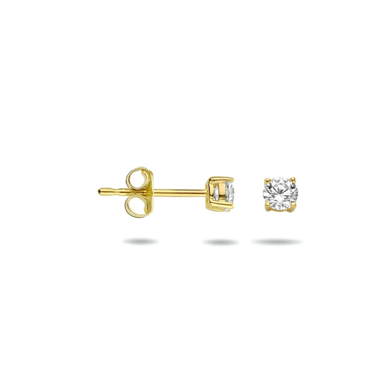 14 Karaat geelgouden oorstekers met zirkonia.  De oorstekers hebben een diameter van 3 millimeter.