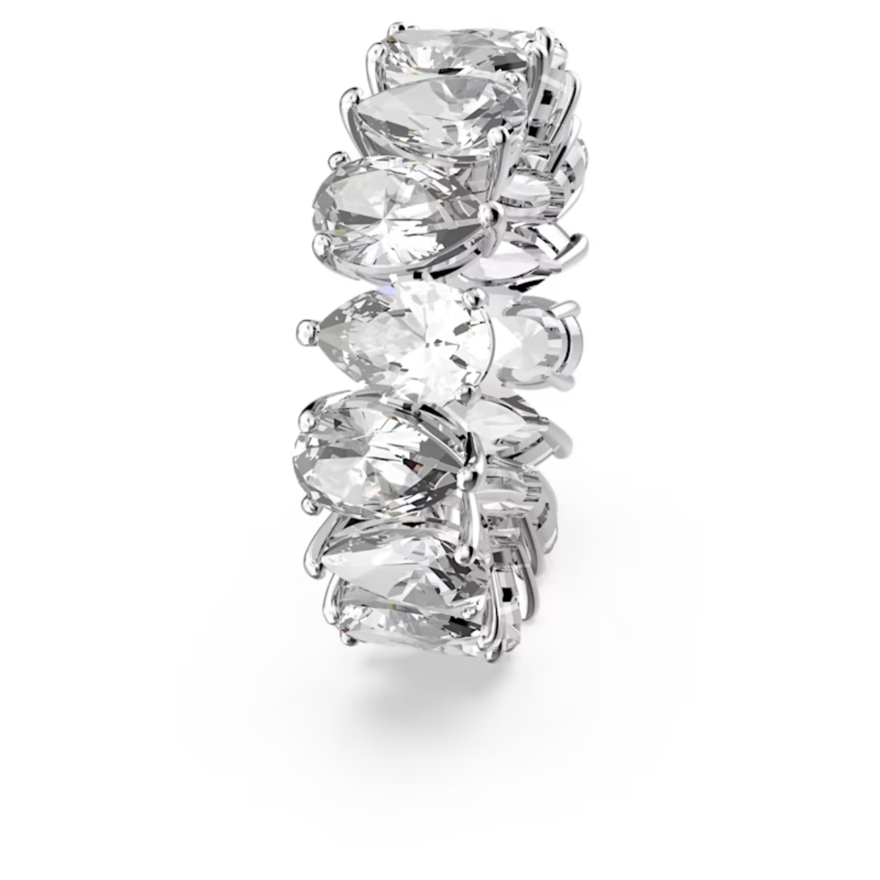 Deze ring van Swarovski is uitgevoerd met de sprankelende schoonheid van glanzende, gefacetteerde kristallen. Witte, druppelvormige elementen die in een enkele rij zijn gerangschikt, reflecteren en breken binnenkomend licht op schitterende wijze. De puristische, elegante vormen maken deze ring perfect om te combineren met andere sieraden en trendy gestapelde looks met bijpassende ringen. Een uitstekende keuze om een outfit voor speciale gelegenheden te verfraaien en een echt geinspireerd cadeau-idee.