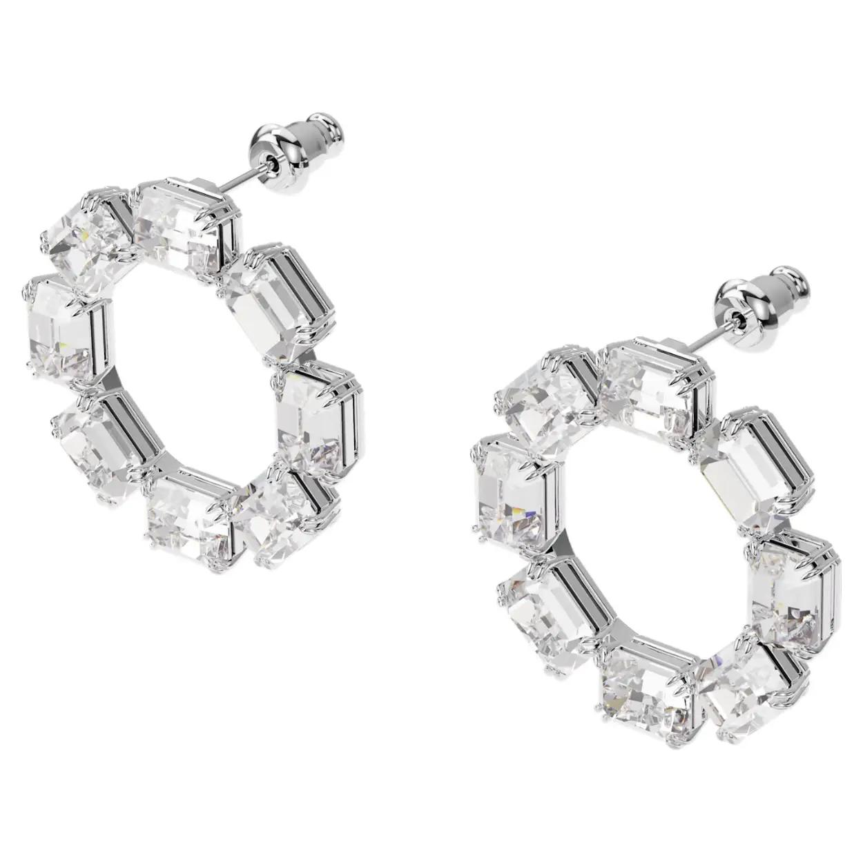 Deze geometrische kristallen oorsieraden, die zijn vervaardigd uit een perfecte cirkel van heldere stenen met een Octagon-slijpvorm, hebben een minimalistisch design dat toch voor een maximale impact zorgt. Door de zetting met rhodium plating passen deze oorsieraden overal bij, van een eenvoudig T-shirt voor overdag tot een strak pak voor 's avonds. Deze oorstekers maken onderdeel uit van de Millenia-lijn en zijn ontworpen door Creative Director Giovanna Engelbert voor Collection I.