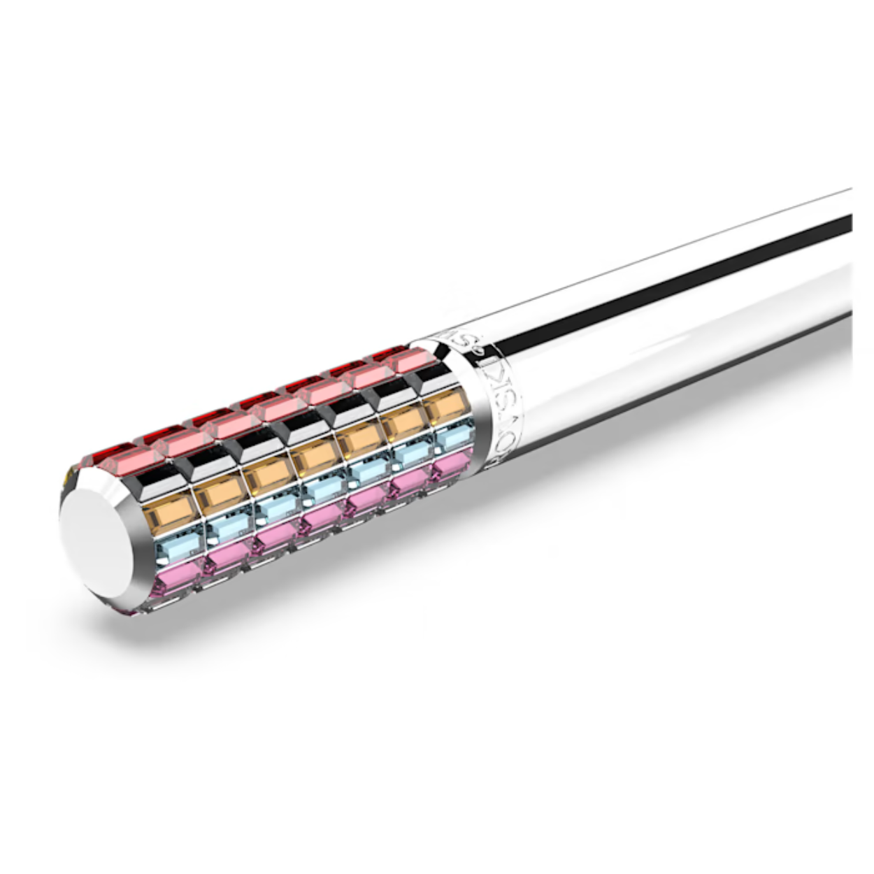 Geniet van alle kleuren van de regenboog met deze opvallende balpen uit de Lucent-lijn. Het verchroomde ontwerp bevat 91 speelse kristallen met een platte achterkant voor de ultieme schittering en een geïntegreerd draaimechanisme voor eenvoudig gebruik. Deze luxe pen is voorzien van het Swarovski-woordmerk en is ideaal voor op uw eigen bureau of als speciaal cadeau voor iemand anders