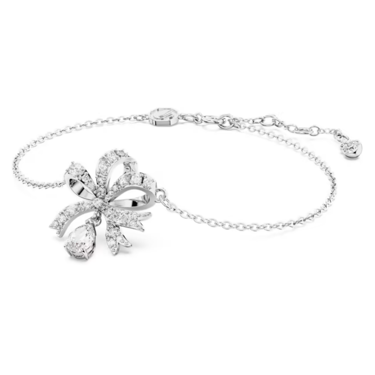 Deze Volta-armband maakt zelfs in de kleinste details een grote indruk. Het mooie sieraad is voorzien van een op een strik geïnspireerd ontwerp met rhodium toplaag en heldere stenen die zijn bevestigd met de chattonagetechniek. De enkele hangende steen met een peervorm zorgt voor een stralende finishing touch. Draag dit sieraad in combinatie met bijpassende oorbellen voor een afgestemde look of geef het cadeau.