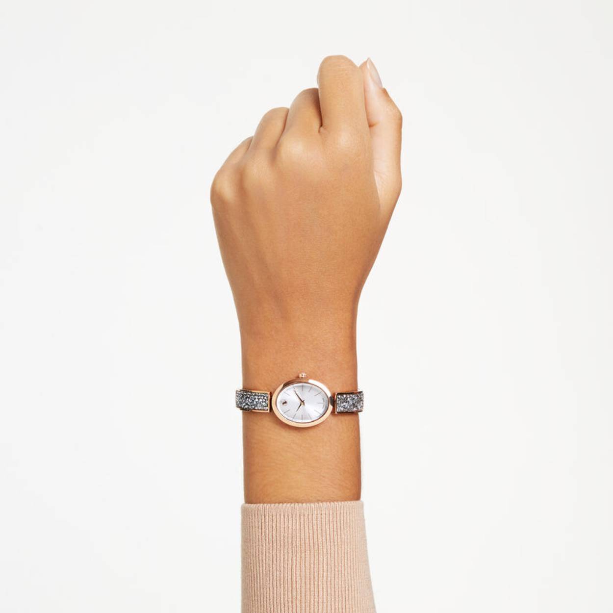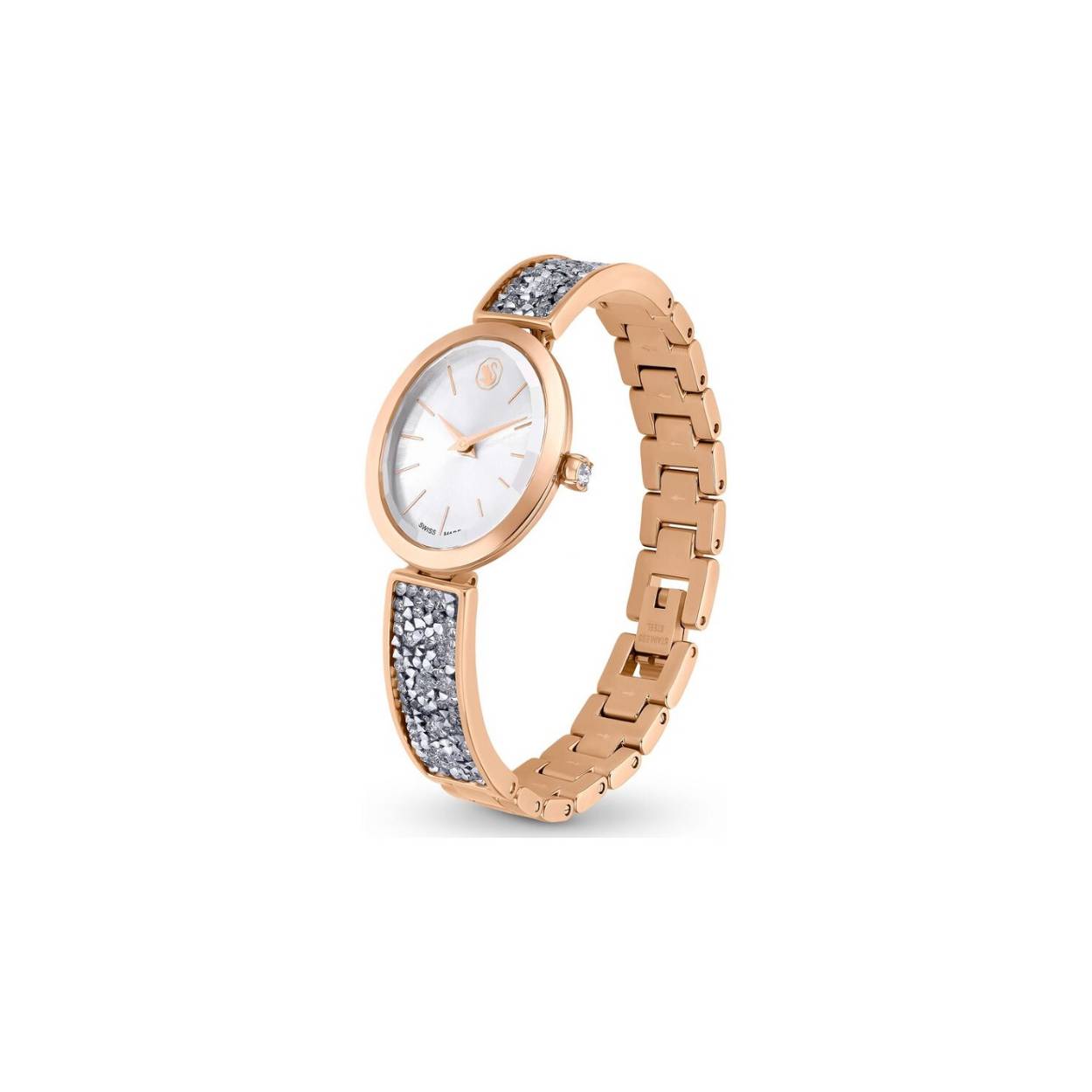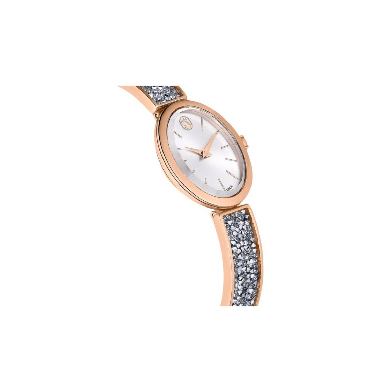 Het luxe ovale Crystal Rock-horloge biedt de ultieme combinatie van puurheid met sensationele glamour. De elegante ovale horlogekast is 26 mm x 29 mm met een roségoudkleurige afwerking. Onder het glas zit een witte wijzerplaat met zonnestralenmotief en de Swarovski-zwaan op 12 uur, en de kroon van het horloge is voorzien van één steen. De horlogekast is bevestigd op een verstelbare metalen armband die is voorzien van zo'n 232 ultrafijne Crystal Rocks, waardoor er een schitterend effect ontstaat. Dit Swiss Made-horloge is waterbestendig tot 50 m, zorgt ervoor dat u iedere dag in stijl op tijd bent en heeft een kenmerkende stijlvolle look die u moeiteloos zowel overdag als 's avonds kunt dragen.