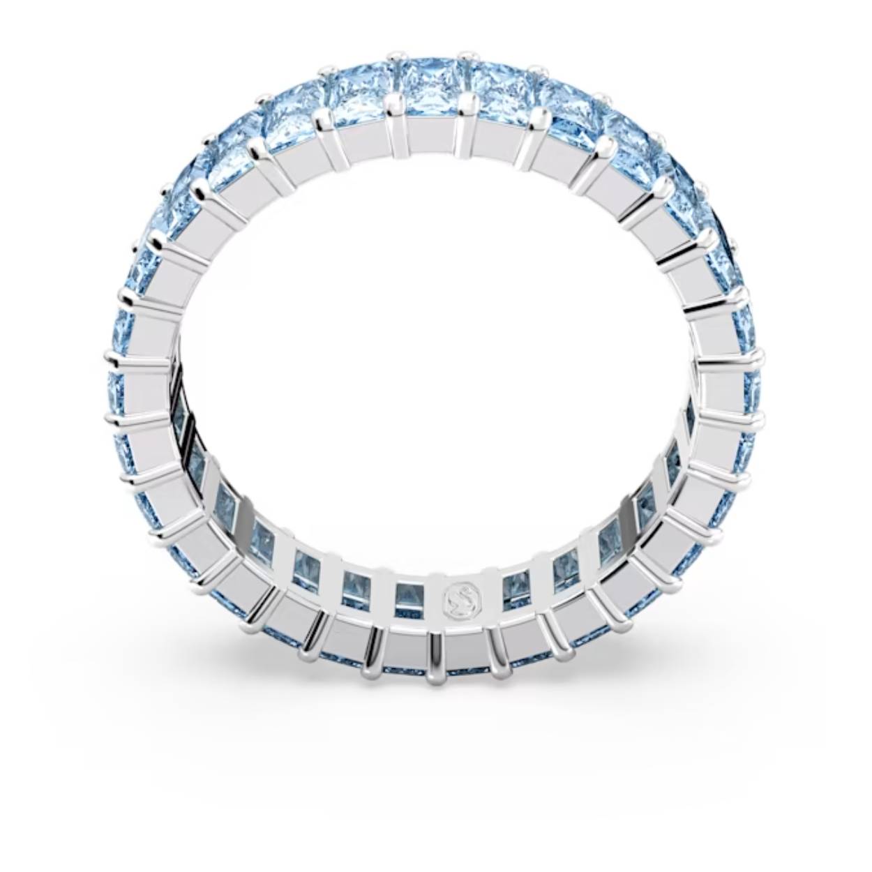 Deze Matrix-ring valt op door de levendige aquamarijnblauwe kleur en vormt een prachtige aanvulling op uw sieradendoos. Blauwe stenen met een princess baguette-slijpvorm zijn gezet op een band met rhodium toplaag aan de hand van een proces waarin wetenschap en magie samenkomen. Dit schitterende accessoire kan eenvoudig gecombineerd worden voor verschillende gelegenheden.