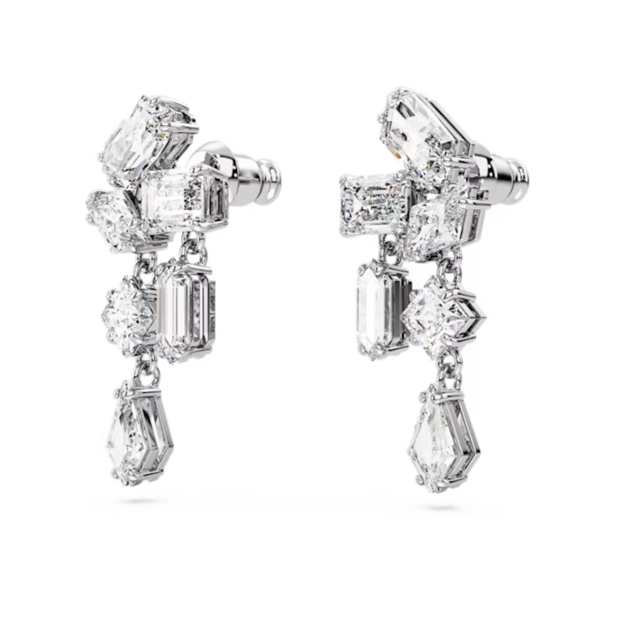 Geef elke outfit een schitterend accent met deze betoverende Mesmera-oorbellen. Elk sieraad is afgewerkt met een rhodium toplaag en voorzien van een opvallende mix van stenen in een klauwzetting. Het korte, hangende ontwerp breekt het licht vanuit elke hoek en is ideaal om tijdens een speciale gelegenheid cadeau te doen.
