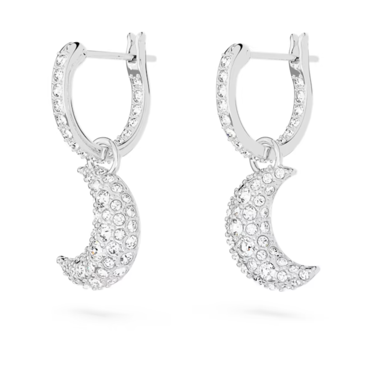 Stijl krijgt een nieuwe draai met deze mini-oorringen uit de Luna-lijn. Het ontwerp met een rhodium toplaag bevat een elegant paar halve manen, die elk zijn gedecoreerd met kristallen in vijf verschillende formaten voor een verfijnd pavé-effect. Een eenvoudige manier om elke look een mystieke energie te geven.