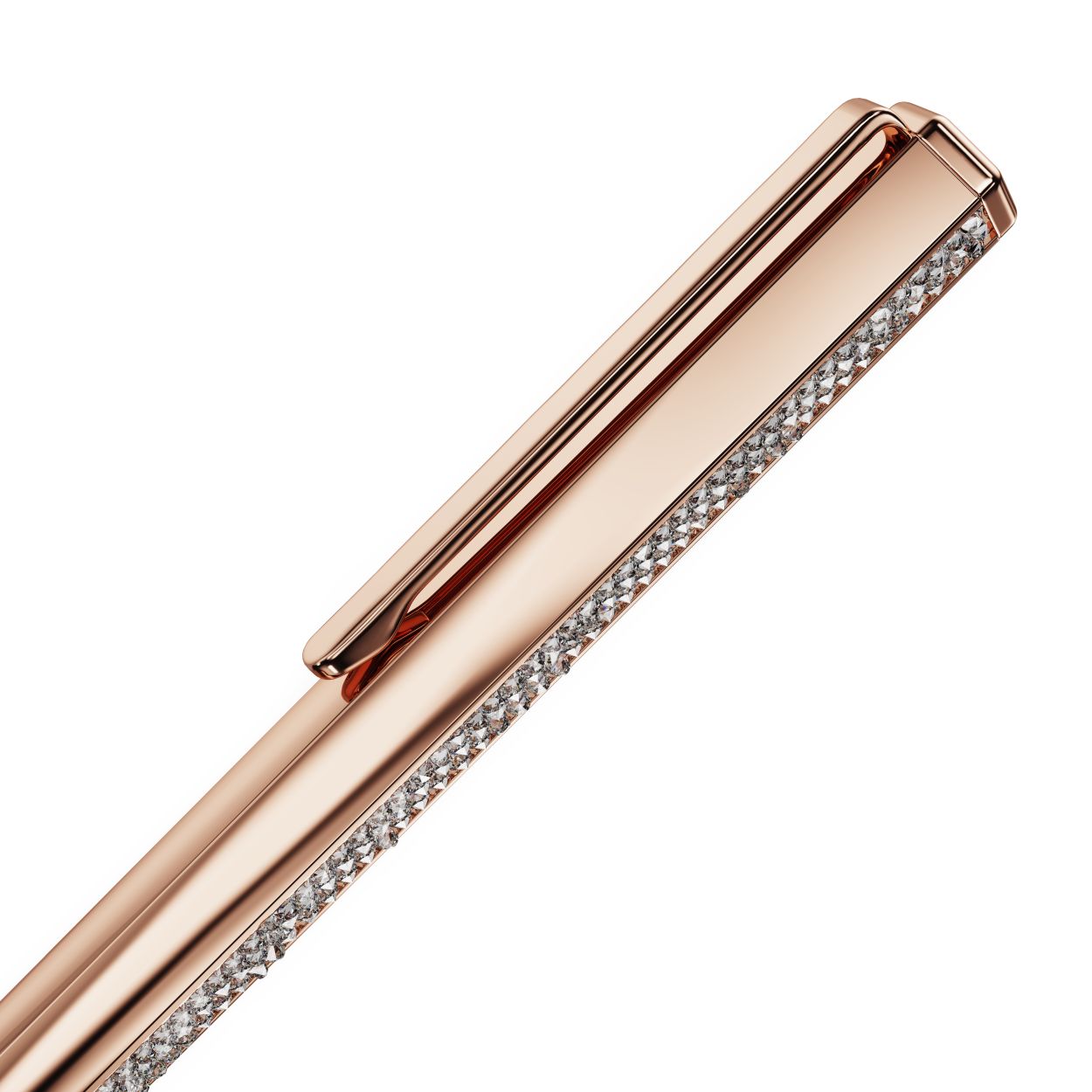 Deze prachtige balpen combineert verfijnde elegantie met moderne eenvoud en is gemaakt voor oogverblindende creativiteit. Het unieke ontwerp met rosé goudkleurige toplaag heeft een achthoekige vorm met een ronde top en weerspiegelt daarmee een perfect evenwicht tussen vorm en functie. De pen is versierd met Ultra Fine Crystal Rocks, zodat elk woord kan worden geschreven met weerspiegelende schoonheid. De clip en het gebruiksvriendelijke draaimechaniek benadrukken het stijlvolle ontwerp. De glinsterende balpen is een gedenkwaardig cadeau voor een speciale gelegenheid. Zwarte en blauwe navullingen zijn verkrijgbaar in de Swarovski-store.