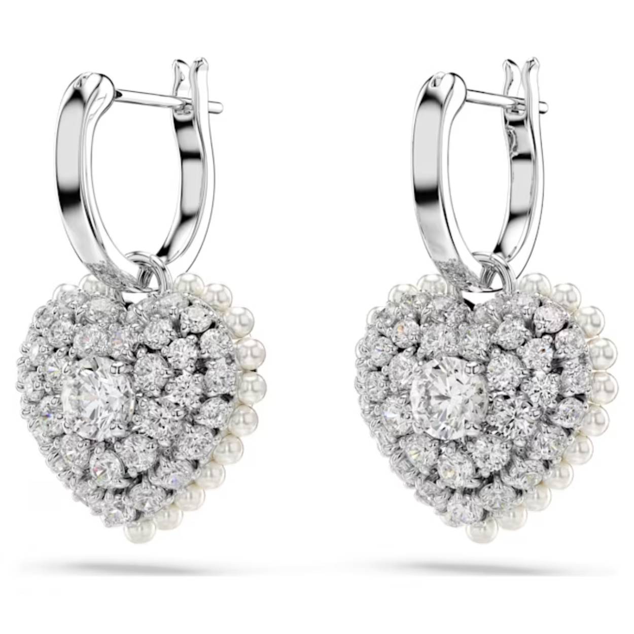 Geef uw stijl een prachtig liefdevol accent met deze expressieve oorstekers. Ze zijn voorzien van een rhodium toplaag en hebben een kooivormig hartontwerp voor maximaal volume. Om het koepelvormige effect te benadrukken, zijn ze voorzien van rondgeslepen heldere Swarovski Zirkonia gezet met de oogverblindende chatontechniek. Combineer ze met een bijpassende hanger voor een elegante, opgewekte uitstraling.
