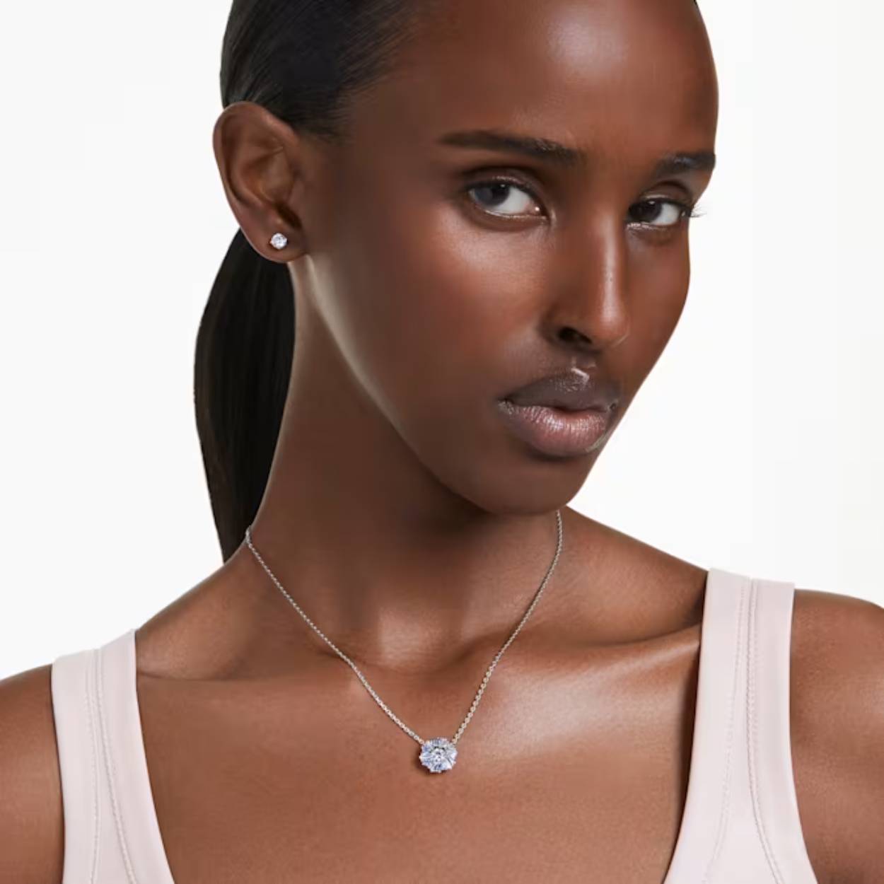 Laat uw stijl stralen met deze op de natuur geïnspireerde Idyllia-set. De hanger met rhodium toplaag wordt gedragen aan een delicate ketting en is voorzien van een bloemenmotief met frisse blauwe en heldere Swarovski Zirkonia. In het midden prijkt een speelse dansende steen. In elk van de bijpassende oorknoppen prijkt een heldere Swarovski Zirkonia in een elegante dubbele klauwzetting. Een eenvoudige maar doeltreffende combinatie als accent in elke outfit.