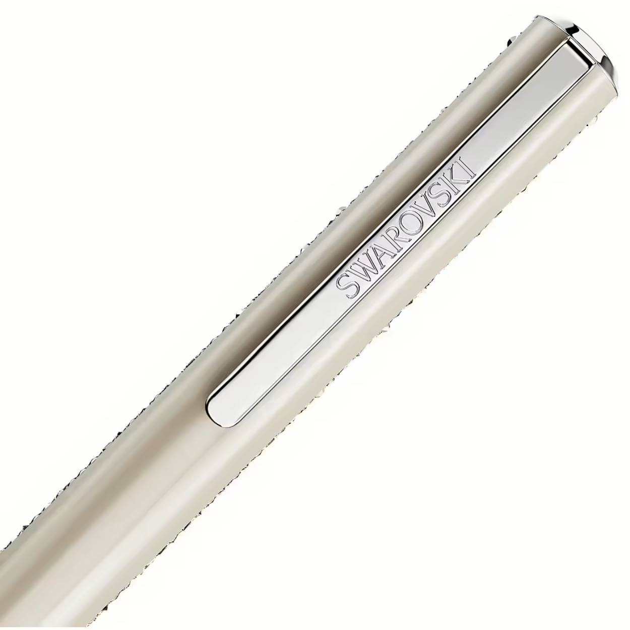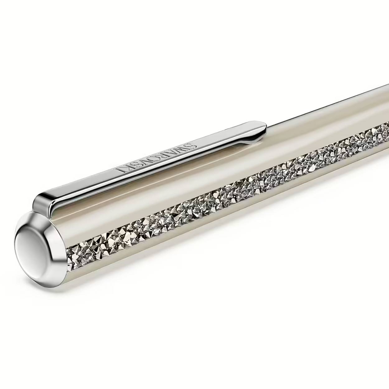 Deze Shimmer Glide-balpen combineert elegantie met modern minimalisme en is de meest verfijnde manier om uw creativiteit te uiten. Aan elke kant van de gelakte beige houder reflecteren de stroken Ultra-Fine Crystal Rocks bij elke beweging het licht. Voor extra precisie en functionaliteit is het ontwerp ook voorzien van een verchroomde clip en een klassiek draaimechanisme. De Shimmer Glide-balpen is het perfecte cadeau voor een verjaardag, jubileum of een andere gelegenheid waarbij u uw waardering wilt tonen. Blauwe en zwarte inktvullingen zijn verkrijgbaar in Swarovski-stores.