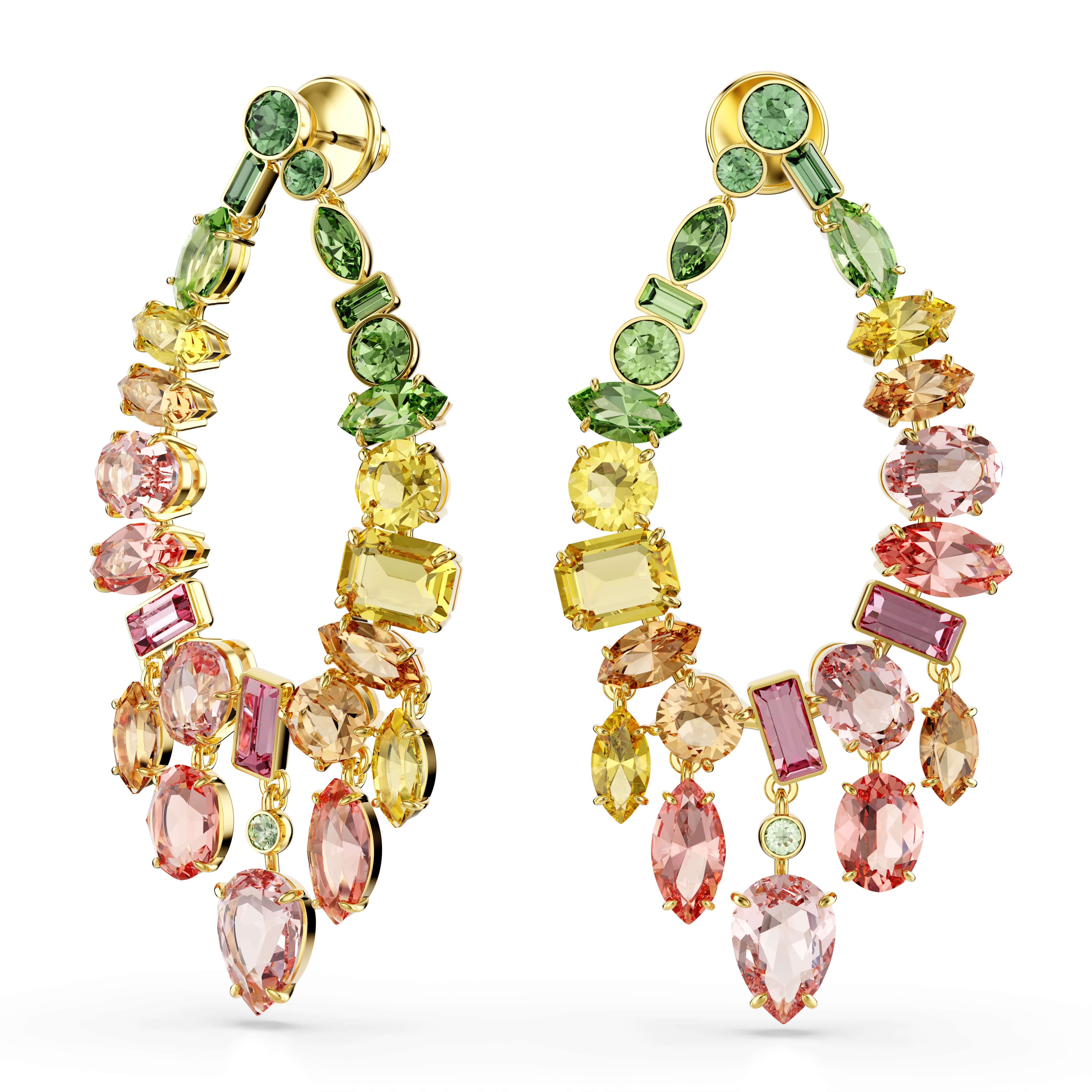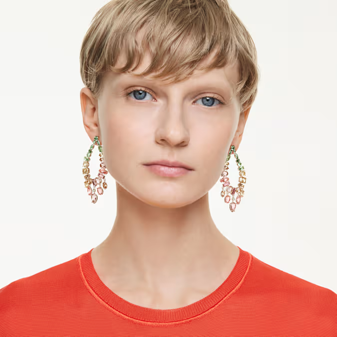 Deze kroonluchteroorbellen zijn zowel dramatisch als speels. De boho-stijl combineert diverse kristallen in verschillende vormen en kleuren, allemaal gerangschikt in een fascinerend verloop en formatie. Combineer ze met de bijpassende hanger om uw styling extra vreugde te geven.