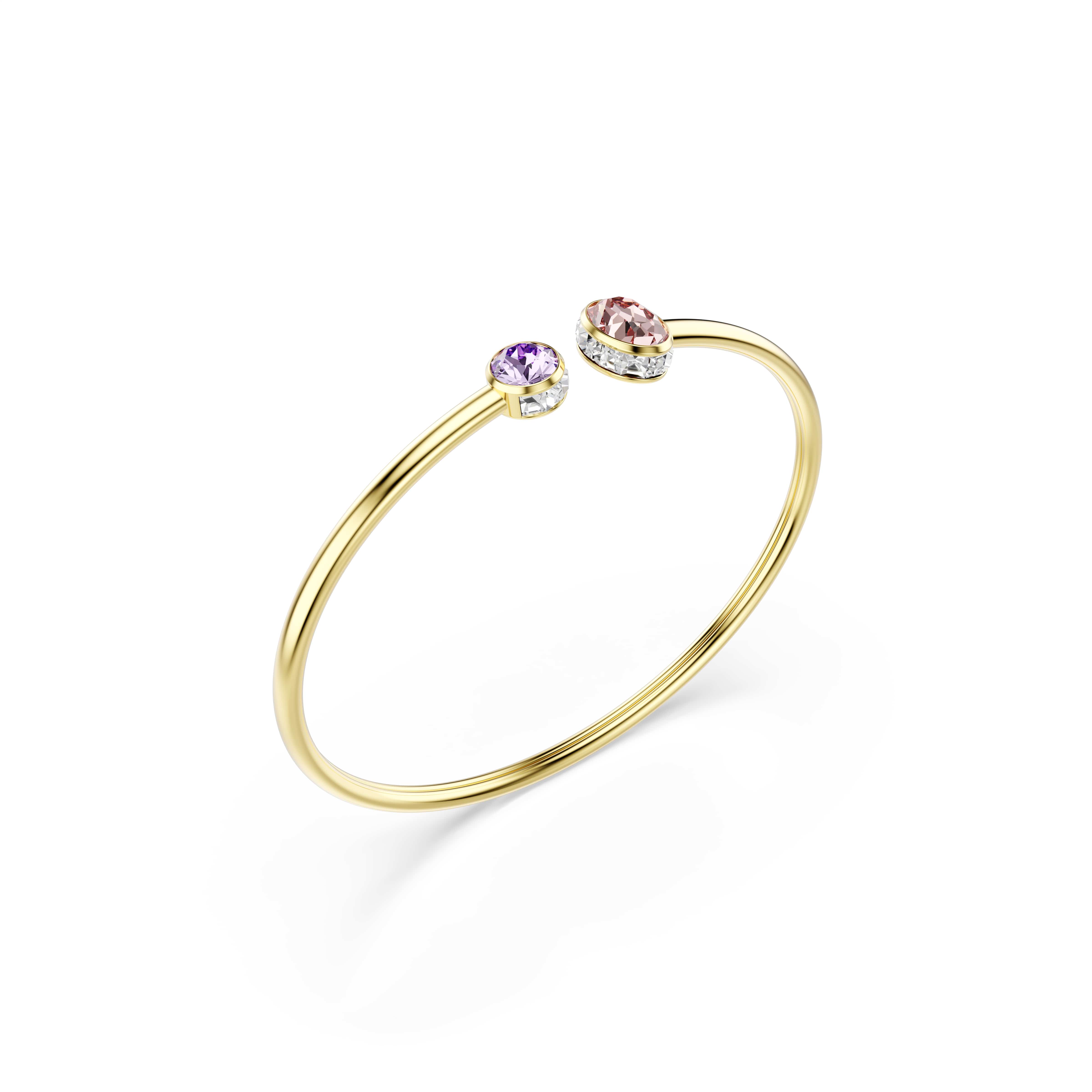 Deze Chroma-armband met een eenvoudig silhouet en delicate kleuren voegt een laagje zachte verfijning toe aan elke look. Het goudkleurige ontwerp is gemaakt voor flexibiliteit en heeft roze en paarse kristallen aan de uiteinden, en glijdt gemakkelijk om de pols voor een dagenlange glans.