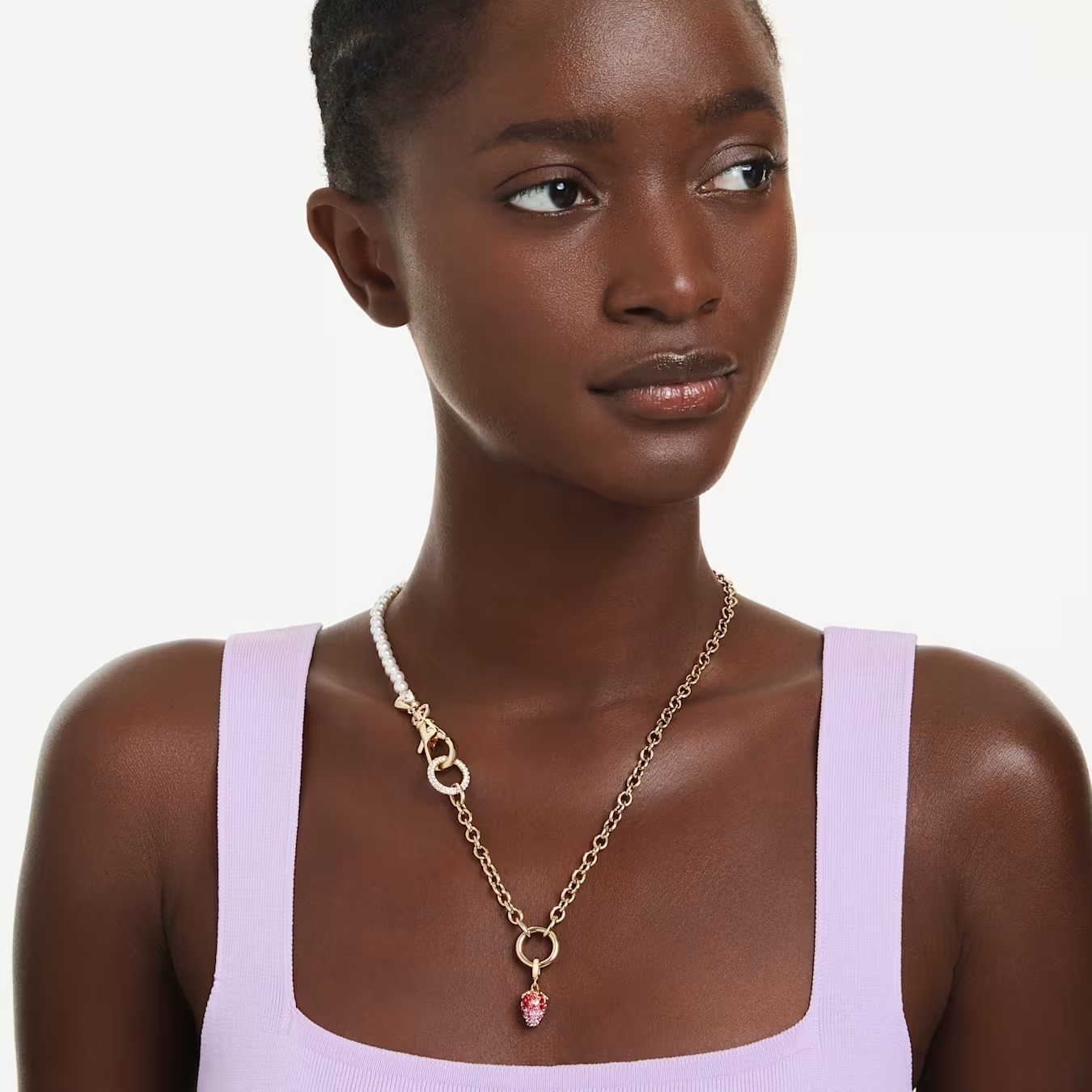 Deze bedel van een heerlijke aardbei geeft een persoonlijke touch aan uw dagelijkse stijl en is ideaal voor wie een zoet voorbeeld van de natuur zoekt. De creatie is versierd met pavé in vier tinten roze en rood met realistische goudkleurige en kristallenzaadjes en heeft een op maat ontworpen sluiting, zodat u de bedel aan verschillende kettingen en armbanden kunt dragen.