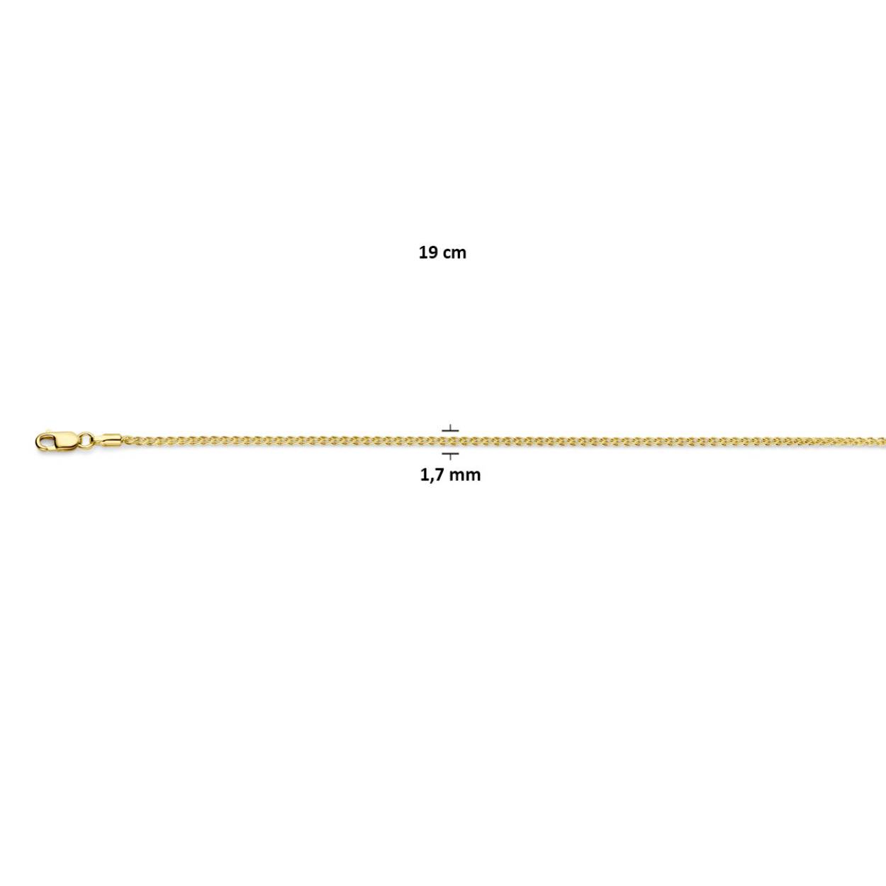 De armband is gemaakt van geelgoud en is goudkleurig. Het is een sieraad voor dames.