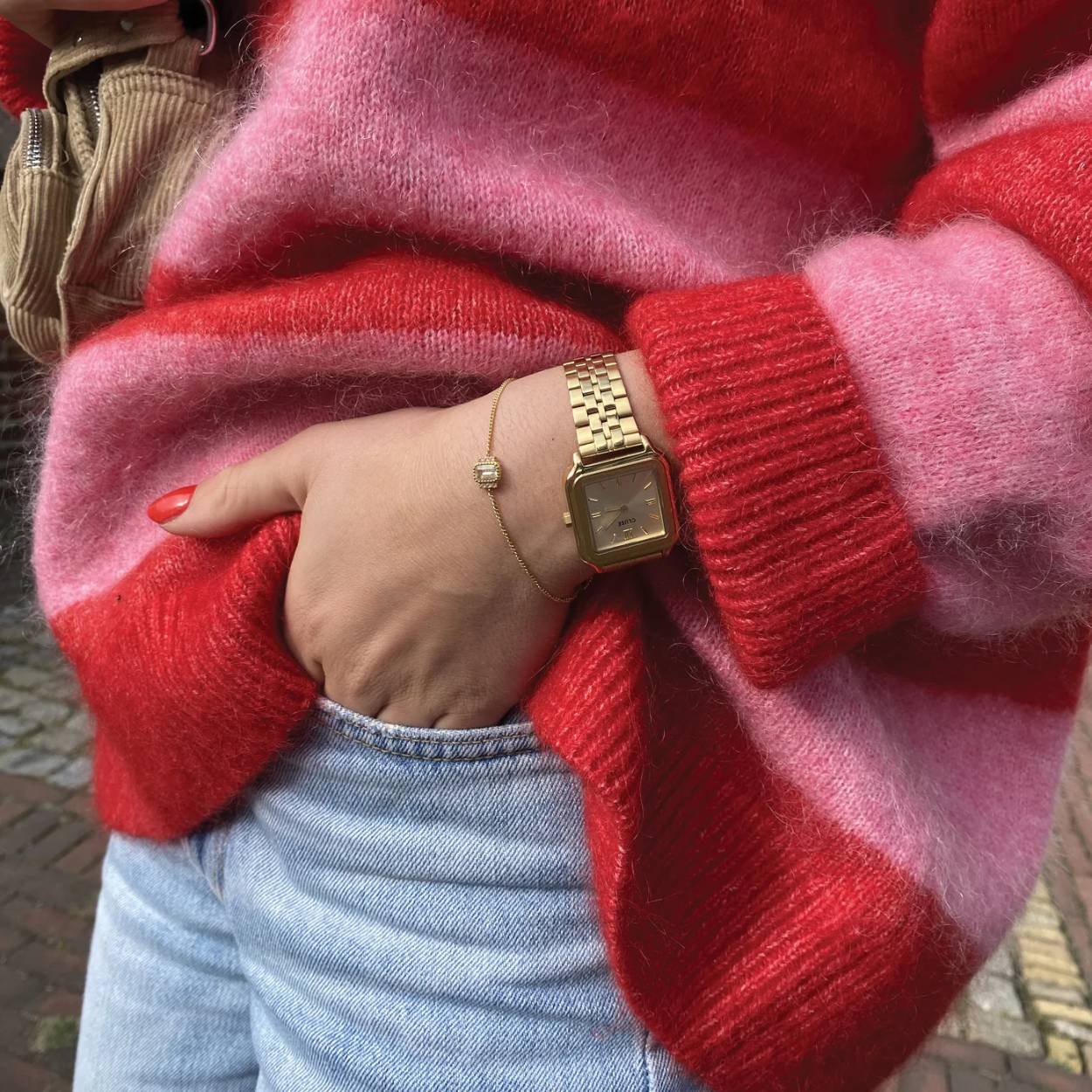 Een opvallende toevoeging aan onze horlogecollectie: de Gracieuse voor dames. Dit horloge heeft een vierkante goudkleurige kast van 28 mm en wordt mooi gecombineerd met een goudkleurige wijzerplaat en een slank goudkleurig edelstaal horlogebandje van 16 mm met 5 schakels. Deze volledig goudkleurige blikvanger zorgt ongetwijfeld voor je volgende stijlstatement waarmee je overal de aandacht weet te trekken. Personaliseer je horloge moeiteloos met elk bandje van 16 mm. Je kunt het bandje snel en eenvoudig aanpassen aan jouw eigen comfort.