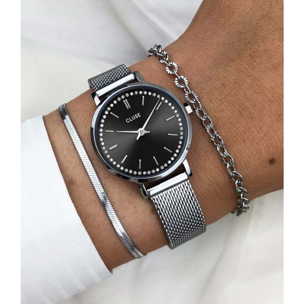 Klein formaat, grote dromen. Met zijn verfijnde kast van 28 mm is onze Boho Chic Petite-collectie je perfecte metgezel als je de voorkeur geeft aan een kleiner uurwerk. Dit horloge heeft een chique donkergrijze wijzerplaat met betoverende ingelegde kristallen en een schitterende zilverkleurige kast en bandje. Dankzij zijn edelstalen kast en mesh bandje is dit horloge gemaakt om lang mee te gaan.