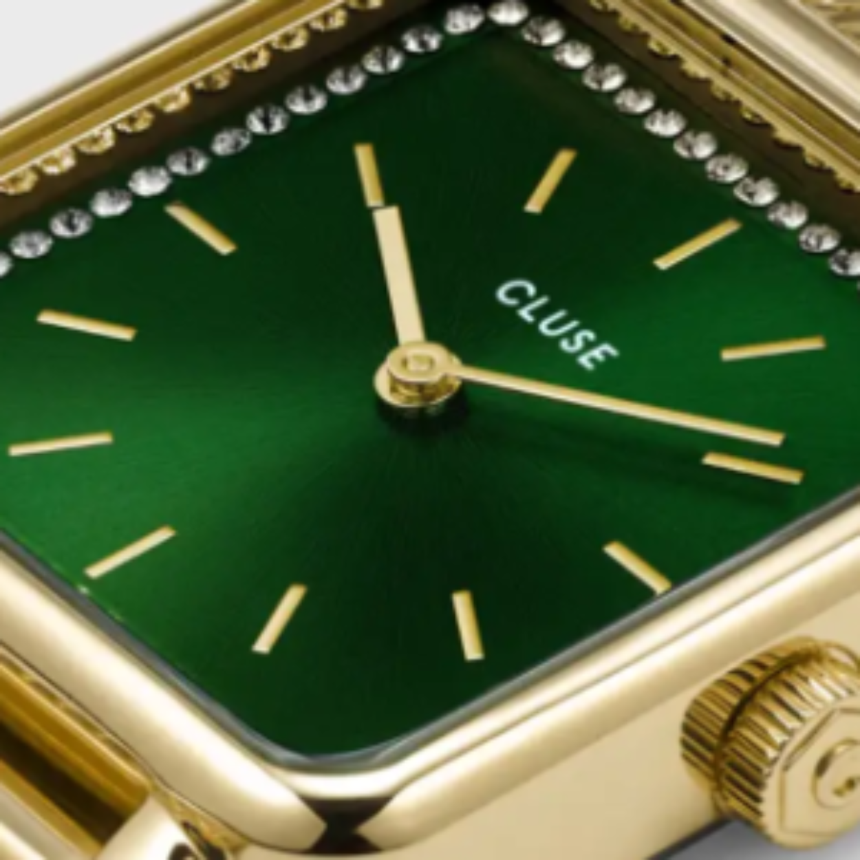 Dompel jezelf onder pure elegantie met het CLUSE La Tétragone dameshorloge in een opvallende gouden en groene kleur. De kenmerkende groene vierkante wijzerplaat, versierd met delicate kristallen, vormt een naadloze aanvulling op het luxe goudkleurige mesh horlogebandje. Hoewel dit sieraad oorspronkelijk deel uitmaakte van onze populaire cadeauset, is het een statement op zich en zorgt het meteen voor een vleugje verfijning om je pols. Net zoals bij al onze horloges in de La Tétragone-collectie, kan de band van dit horloge vervangen worden door alle 16-mm CLUSE-horlogebandjes.