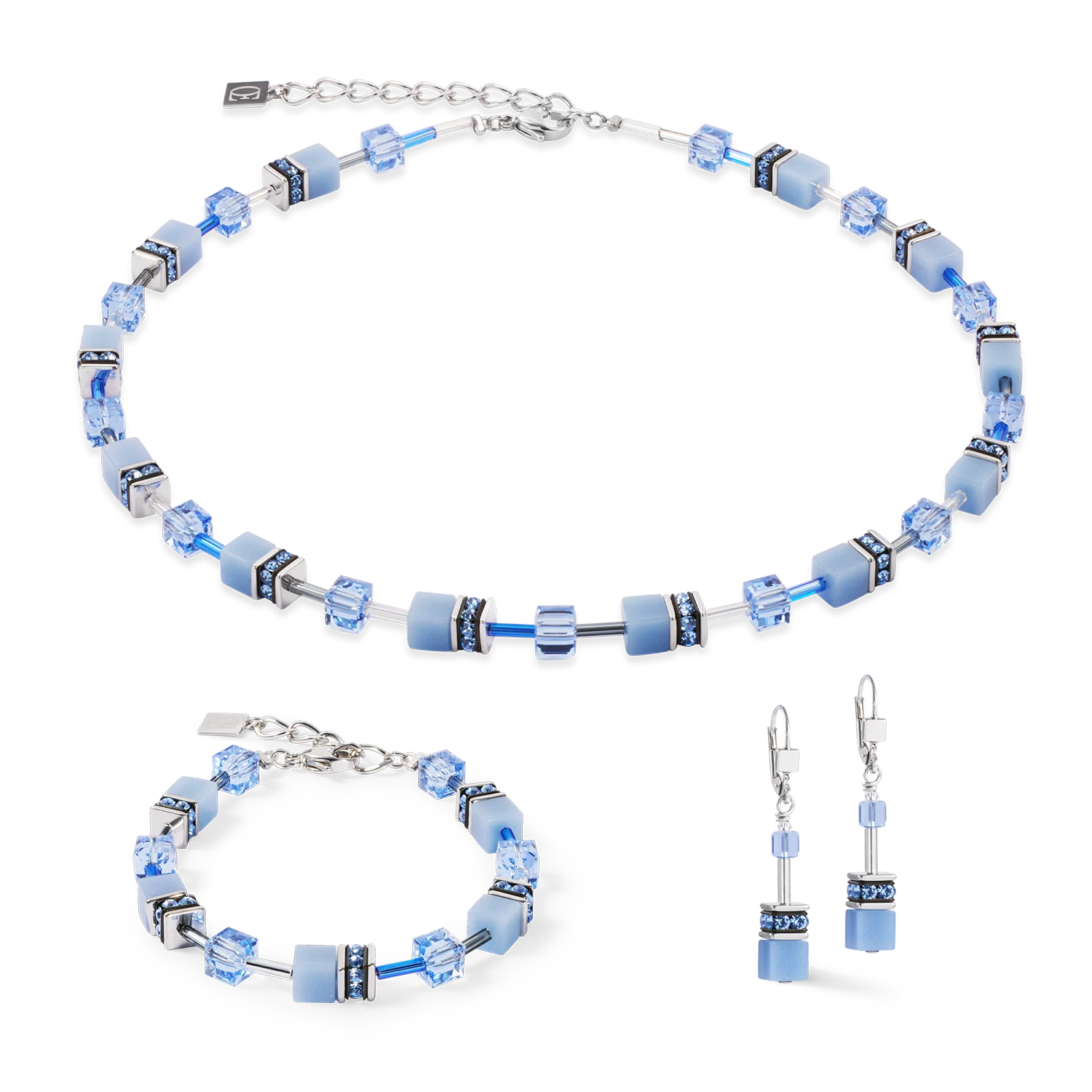 Das GeoCUBE® Iconic Armband in Silber-Blau bringt klassische Eleganz an Ihr Handgelenk. Mit seiner Kombination aus silberfarbenem Edelstahl,  transparenten blauen Würfeln und den Strassrondellen ist dieses Armband ein zeitloses Accessoire, das zu jedem Outfit passt. Ob im Alltag oder zu besonderen Anlässen – dieses Armband verleiht Ihrem Stil eine subtile, aber markante Note von Raffinesse und bleibt dabei immer im Trend.