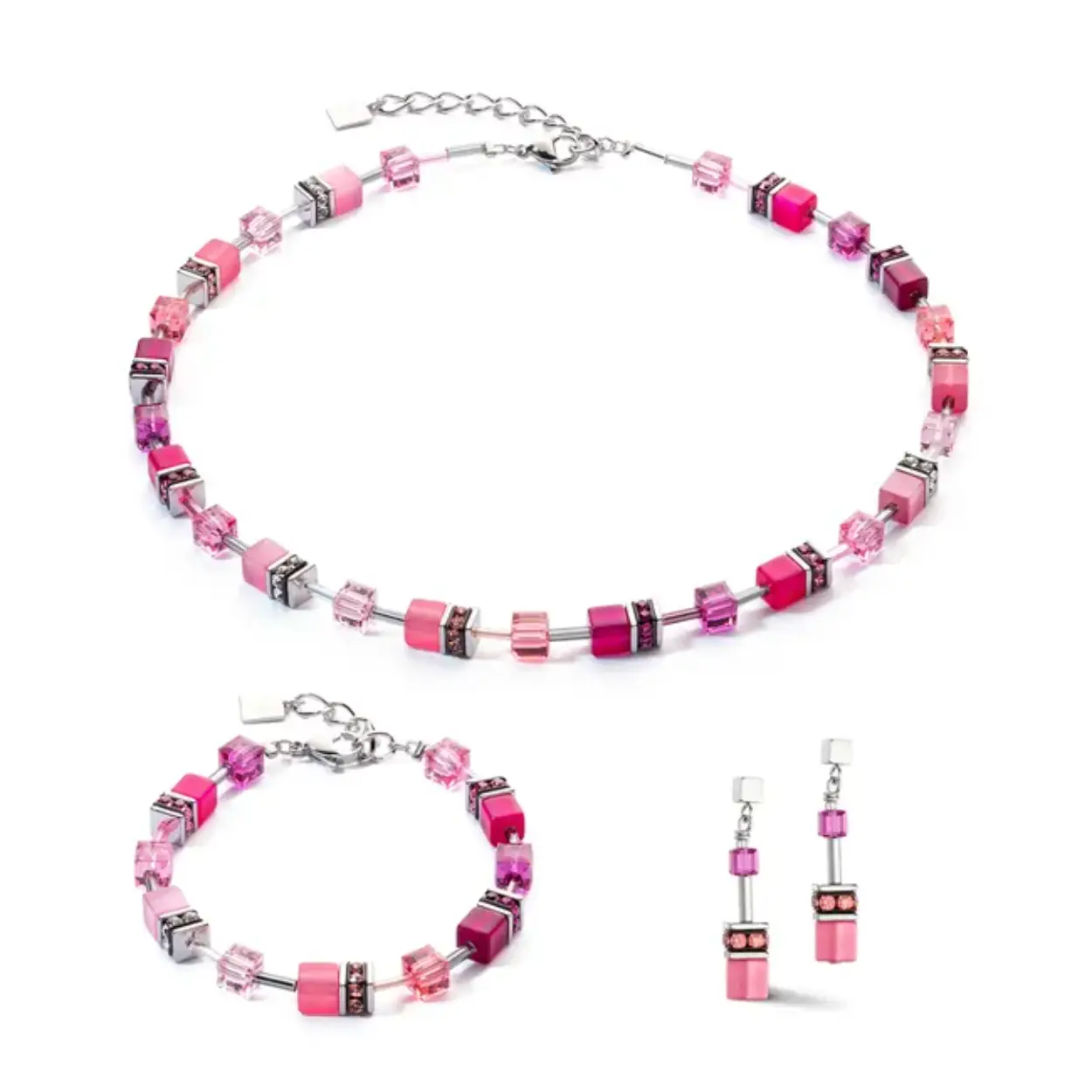Roze Coeur de Lion 2838/30-0422 Geo Cube Iconic Viva Magenta armband. Deze vrolijke eye catcher heeft een lengte van 18.5 cm en een verlengstukje van 3 cm. Verrijkt met Swarovski kristal, rhinestone rondellen, polaris, glas en zilverkleurig roestvrijstaal. Dit Duitse sieradenmerk staat bekend vanwege haar minimalistische sieraden met vaak knallende kleurcombinaties van hoogwaardige materialen zoals de kristallen van Swarovski. De sieraden zijn met de hand gemaakt. Ready to shine?