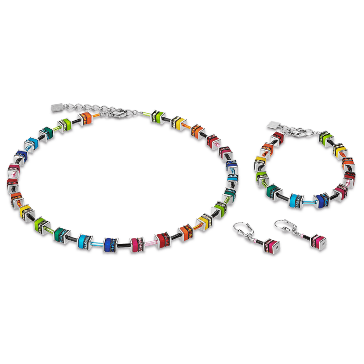 Coeur de Lion collier Multicolour Rainbow is vervaardigd van synthetisch tijgeroog, Swarovski kristallen, stalen sluiting en verlengketting. 42-48cm lang.