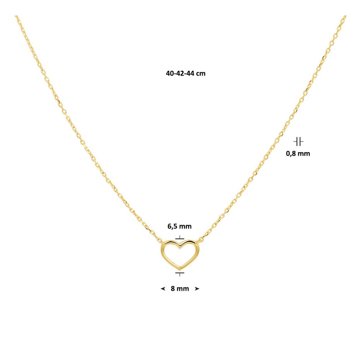 Dit fijne 14k geelgouden collier met een open hartje geeft je outfit een vriendelijke touch. Het collier heeft draaglengtes van 40, 42 en 44cm.