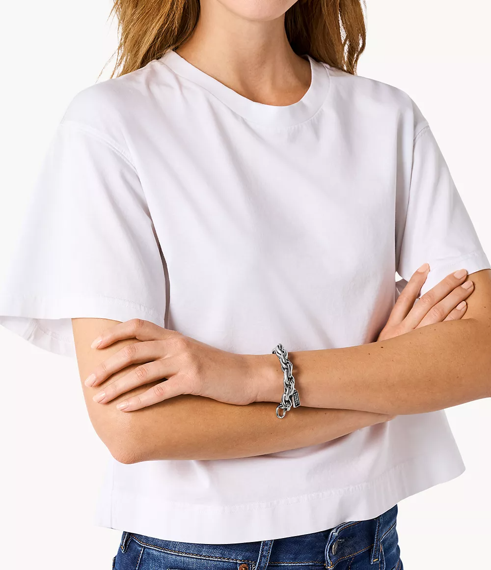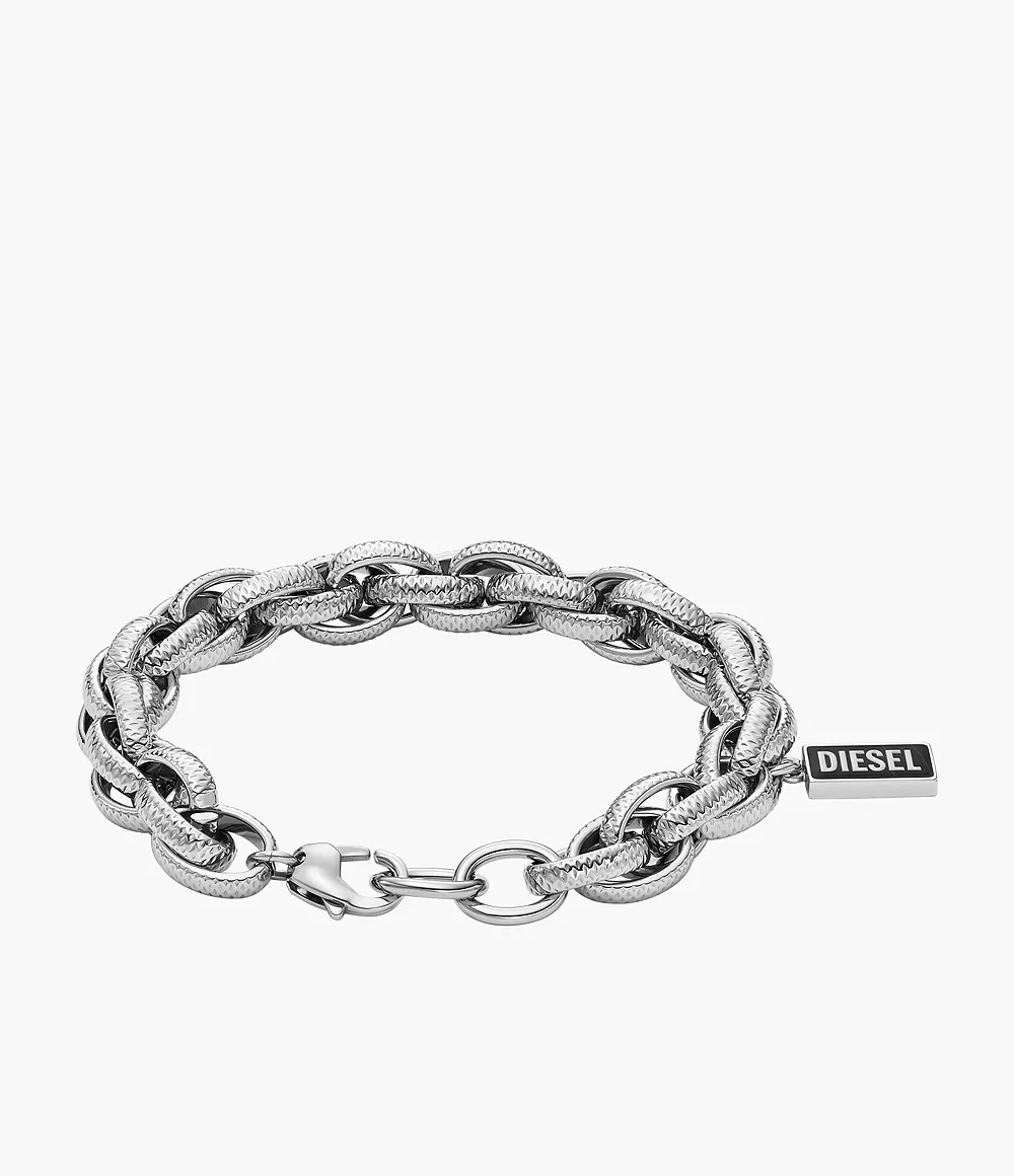 De roestvrijstalen Diesel Steel armband DX1514040 heeft een brede, getextureerde schakel. Deze opvallende armband is perfect voor wie van een sportieve en onderscheidende stijl houdt.