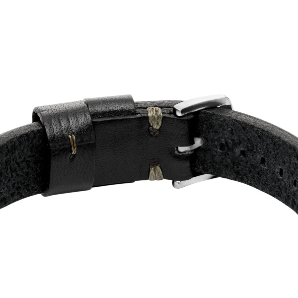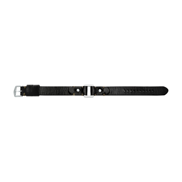 Geïnspireerd door klassieke Amerikaanse machines, is de Machine-collectie robuust en duurzaam. De zwarte leren band heeft een natuurlijke textuur die na verloop van tijd karakter ontwikkelt en wordt geaccentueerd door een vierkante ring en kraagspeld van roestvrij staal. De verstelbare gesp zorgt voor een veilige, nauwsluitende pasvorm. Een waar statement in industrieel geïnspireerd design.