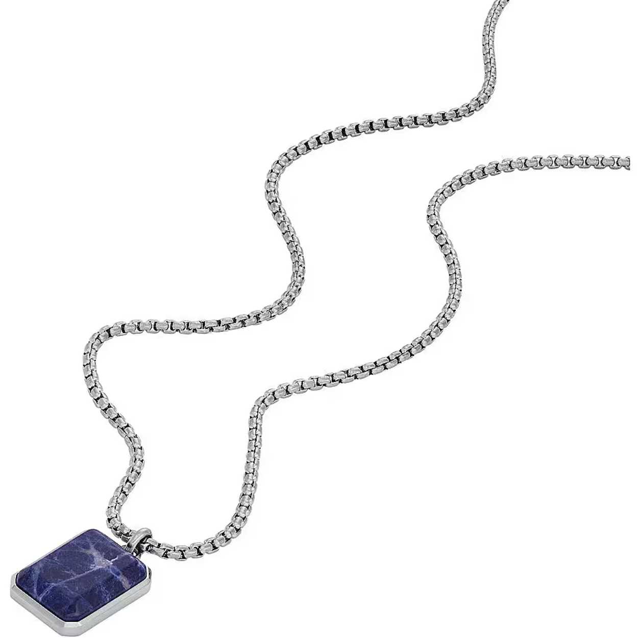 Fossil JF04469040 Ketting staal-sodaliet zilverkleurig-blauw 51-56 cm echt iets voor u. Dit verfijnde collier is een plaatje. De kleur van dit collier is . De dikte van het collier is en de lengte is 51 cm.