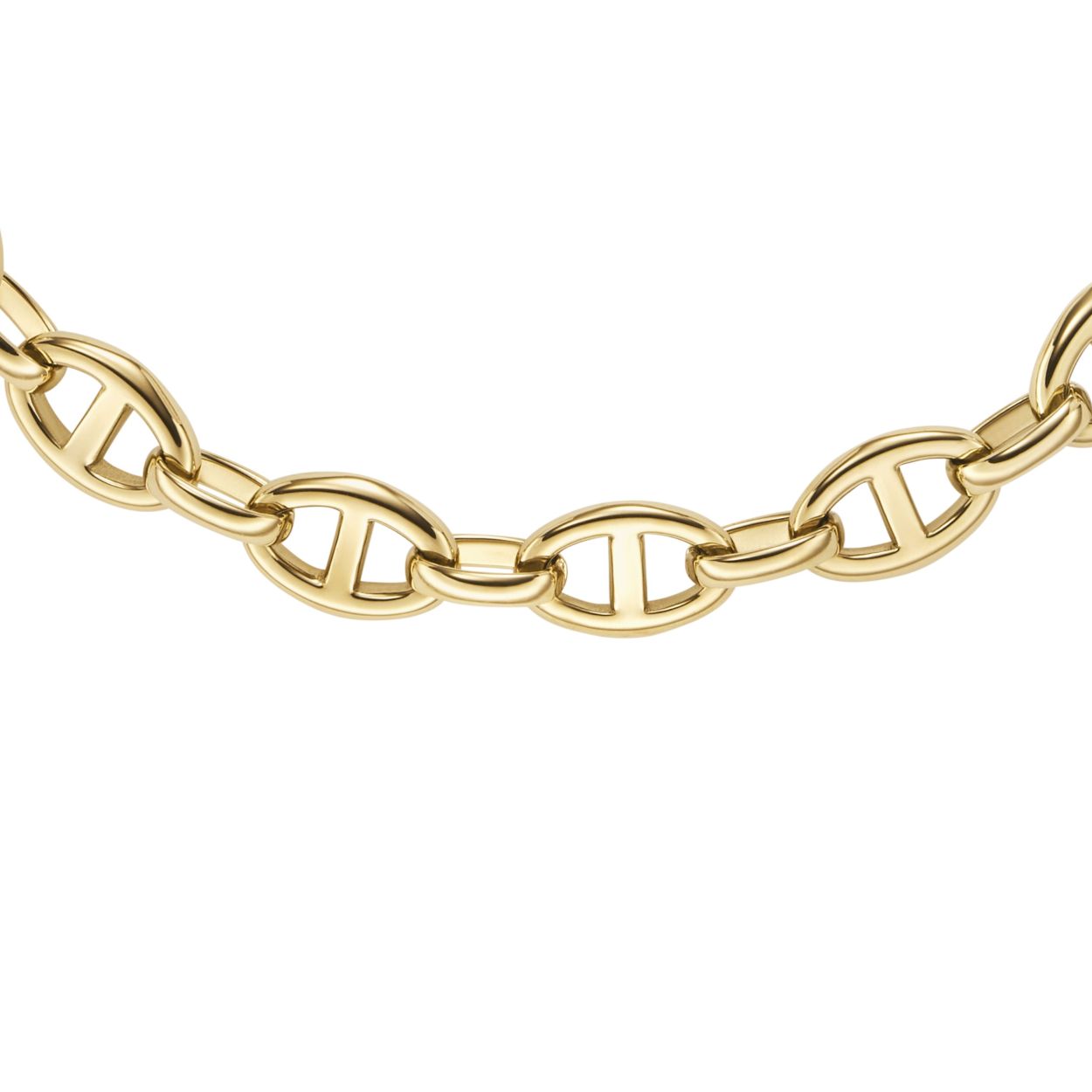Onze Fossil Heritage-sieradencollectie eert gedurfd en tijdloos ontwerp. Deze opvallende goudkleurige ankerschakelketting met een karabijnsluiting heeft ons kenmerkende D-link ontwerp en kan zelfstandig worden dragen als een statement item of gelaagd met je favoriete kettingen.