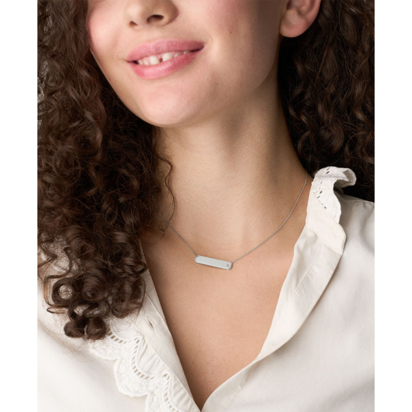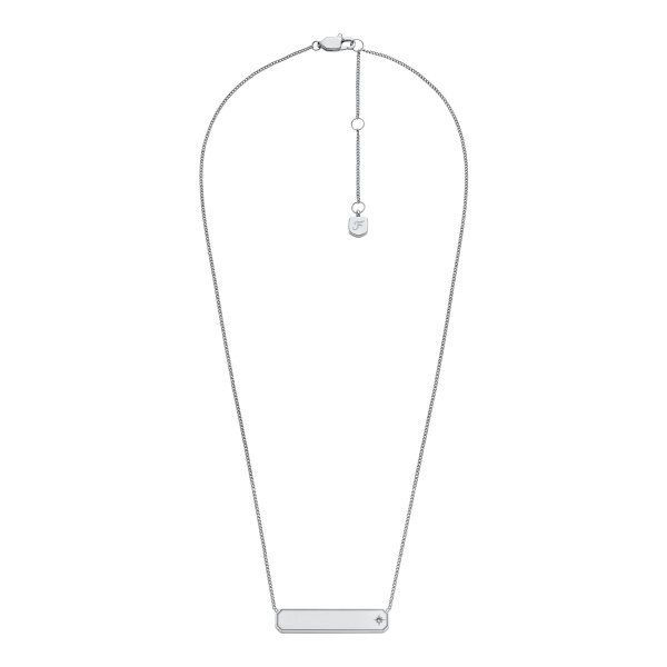Deze ketting heeft een strak identificatieplaatje in combinatie met een delicate ketting voor een moderne, ingetogen look. Gemaakt van gepolijst zilverkleurig roestvrij staal en geaccentueerd met een subtiele ster-ets en kristal voor een eenvoudig en verfijnd ontwerp. Een karabijnsluiting zorgt voor veilig en gemakkelijk dragen, terwijl het graveerbare ontwerp een persoonlijk tintje toevoegt.