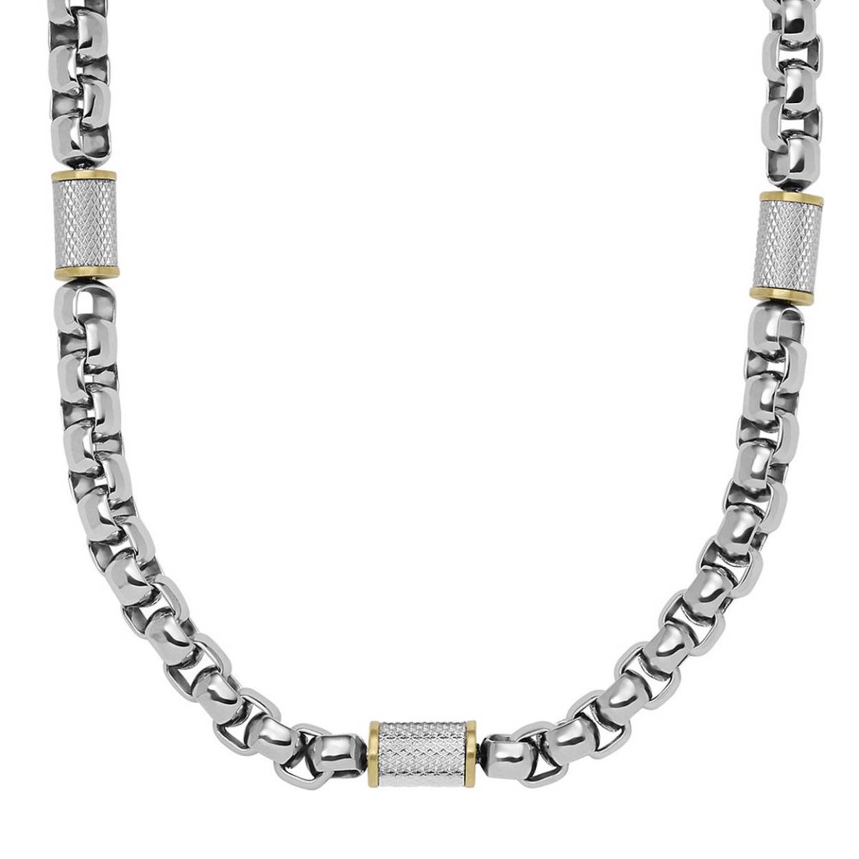 Deze schakelketting is gemaakt van tweekleurig roestvrij staal en heeft een karabijnsluiting.