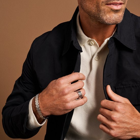 Maak kennis met Arden, een sieradencollectie geïnspireerd op klassieke horlogeschakels, een look die een eerbetoon is aan onze legendarische geschiedenis van de horlogemakerij. Deze roestvrijstalen armband is ontworpen om op zich te dragen of kan gelaagd worden gedragen met andere armbanden uit je collectie.
