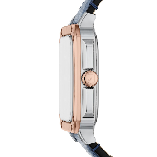Een moderne klassieker met een tijdloze aantrekkingskracht: het Crosby horloge combineert vorm en functie. De rechthoekige roségouden roestvrijstalen kast heeft een marineblauwe sunray wijzerplaat met een datumvenster om u op schema te houden. De marineblauwe leren band complementeert het klassieke ontwerp met een gesp met pinnen voor eenvoudige verstelling. Veelzijdig en toch onderscheidend, dit klassieke horloge hoort thuis in uw horlogecollectie.