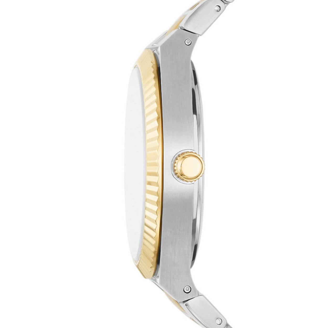 Dit horloge is gemaakt van hoogwaardig roestvrij staal en heeft een fijne kliksluiting waarmee je het item met gemak om en af kunt doen. De kast heeft een diameter van 38 millimeter en is zilverkleurig. Het horloge heeft een ronde vorm en een uurwerk van quartz. De analoge tijdsweergave zorgt ervoor dat je de tijd altijd duidelijk kunt aflezen. De horlogeband heeft een breedte van 8 millimeter en past perfect bij dit stoere Scarlette ES5259 horloge van Fossil.