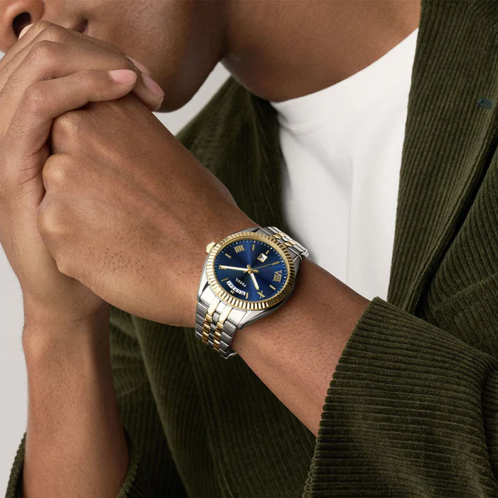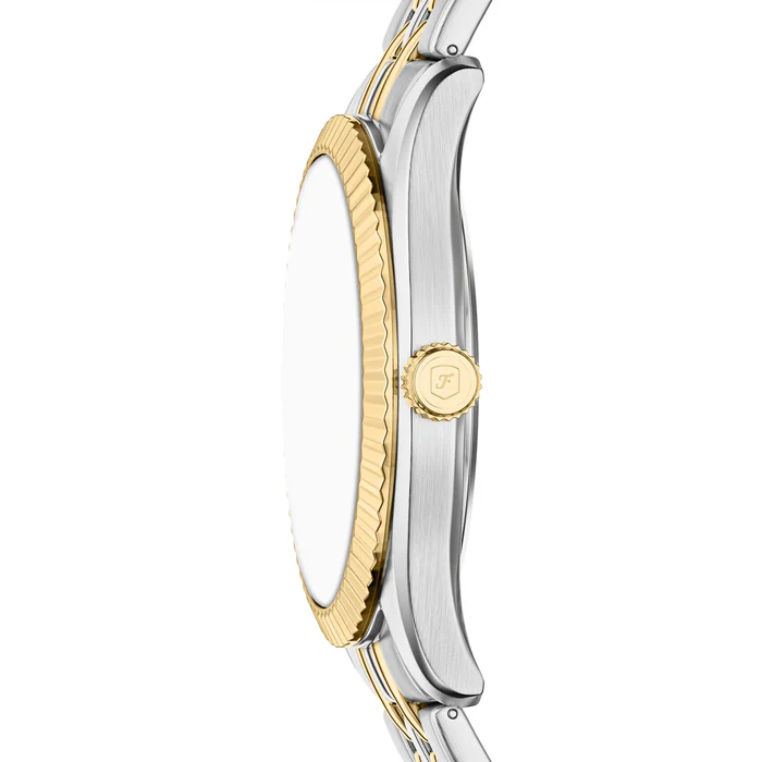 De FOSSIL HORLOGE FS6141 is een stijlvolle polshorloge met een zilverkleurige kast en een goud-zilverkleurige metalen band. Het heeft een blauwe wijzerplaat, analoge tijdsaanduiding en een datumfunctie. Met een waterbestendigheidsniveau van 5 is het ideaal voor dagelijks gebruik. Perfect te combineren met zowel formele als informele outfits voor een elegante uitstraling.