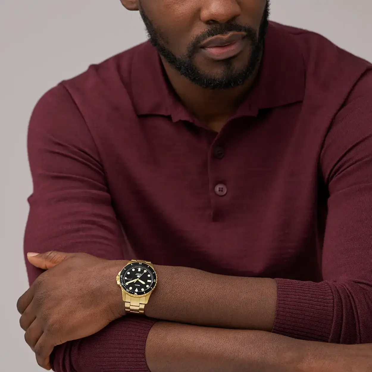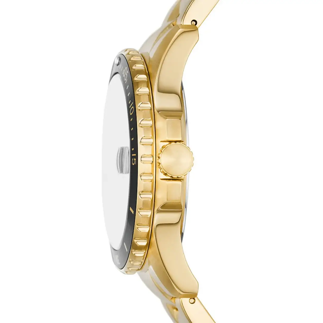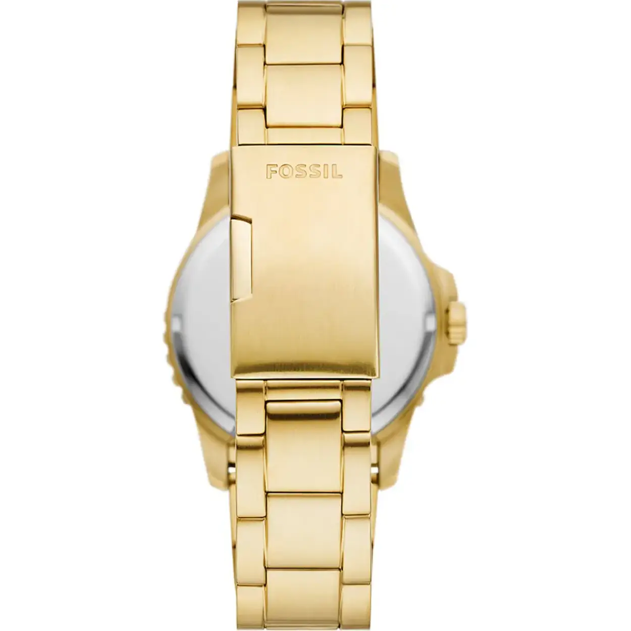 Doelbewuste ontwerpdetails definiëren onze aloude horlogecollectie, Fossil Blue Dive. Dit goudkleurige uurwerk in duikstijl is vakkundig gemaakt met een roestvrijstalen mesh armband met 3 schakels, geometrische uuraanduidingen en een unidirectionele roterende bovenring. Getest op 100meter waterbestendigheid.