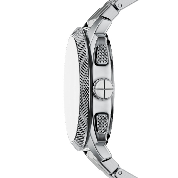 Geïnspireerd door klassieke Amerikaanse machines, trekt de Machine Chronograph de aandacht met zijn opvallende gekartelde bovenring. Onmiskenbaar mannelijk met een stoere kast van 44 mm, een geborstelde, diepbruine wijzerplaat met textuurdetails, beschermd door een mineraalglas. Aangedreven door een nauwkeurig quartz chronograafuurwerk, is dit robuuste horloge gebouwd om lang mee te gaan met een duurzame roestvrijstalen band. Een waar statement in industrieel geïnspireerd design.
