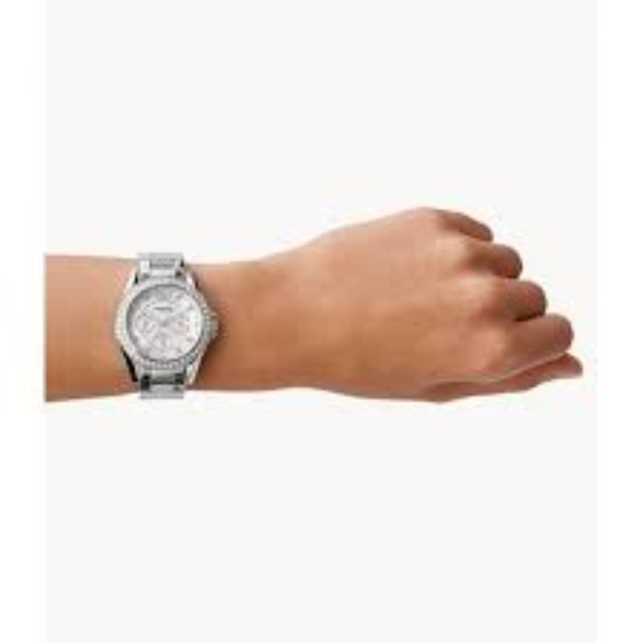 De FOSSIL HORLOGE RILEY ES3202 is een elegante dameshorloge met een ronde roestvrijstalen kast en een zilverkleurige wijzerplaat versierd met sierdiamanten. Deze quartz horloge is waterdicht tot 10 ATM en heeft een datumaanduiding. De zilveren roestvrijstalen band is nikkelvrij en anti-allergisch. Ideaal voor zowel dagelijks gebruik als speciale gelegenheden. Draag het om je pols voor een verfijnde uitstraling.