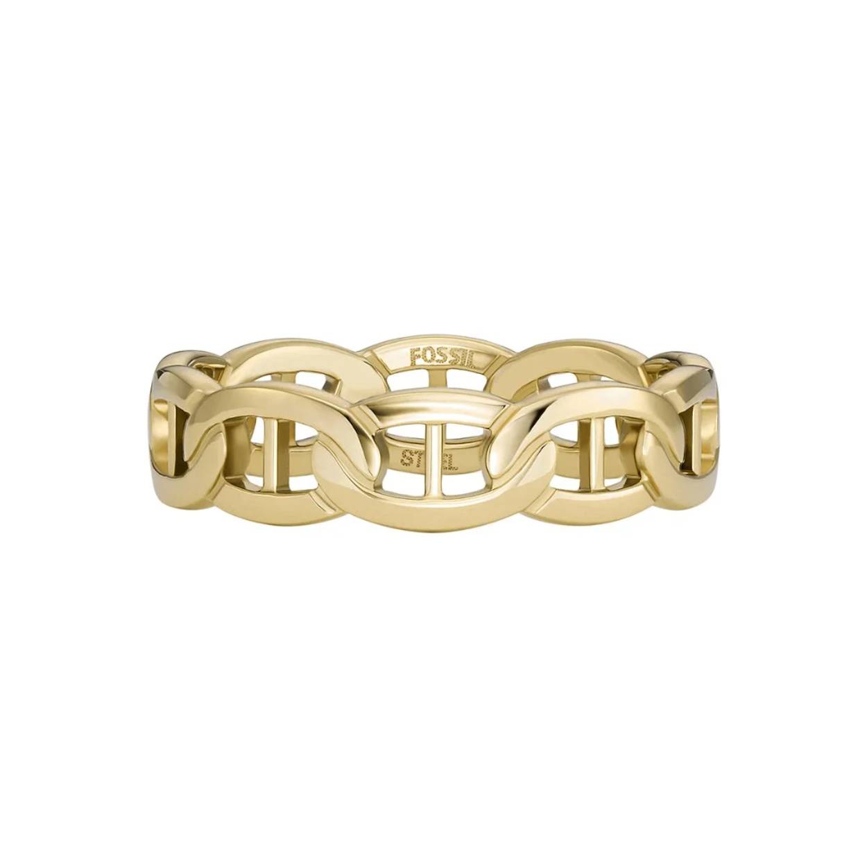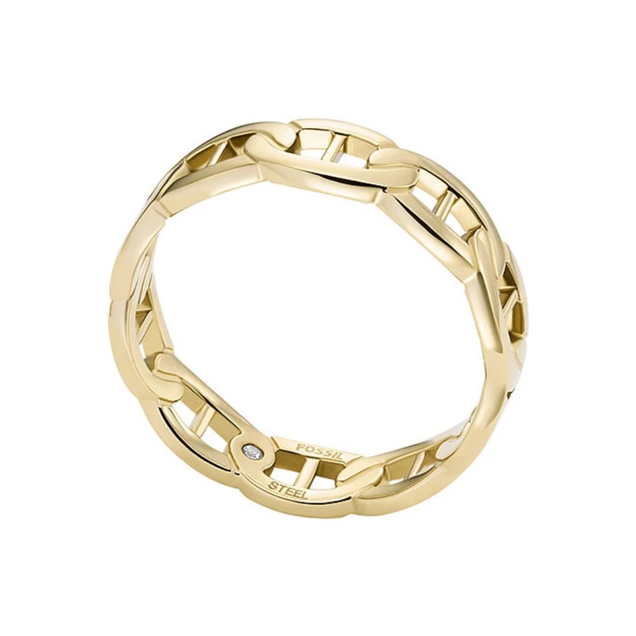 Onze Fossil Heritage-sieradencollectie is een eerbetoon aan een gedurfd en tijdloos ontwerp. Deze goudkleurige roestvrijstalen ring is voorzien van onze Heritage D-link ketting met een geborstelde afwerking.