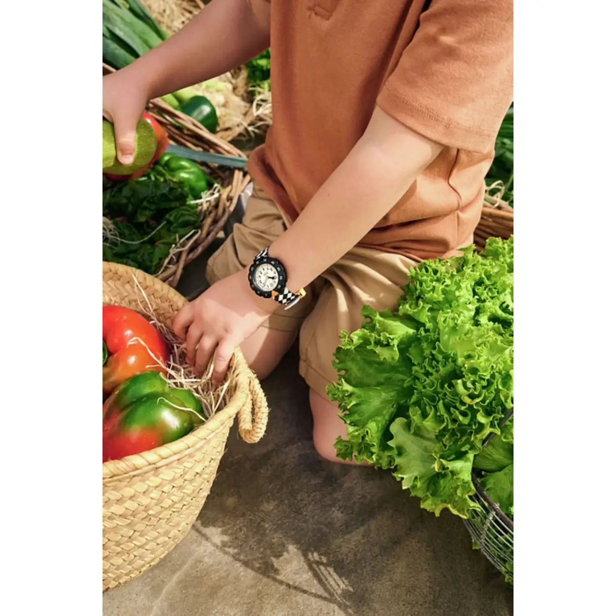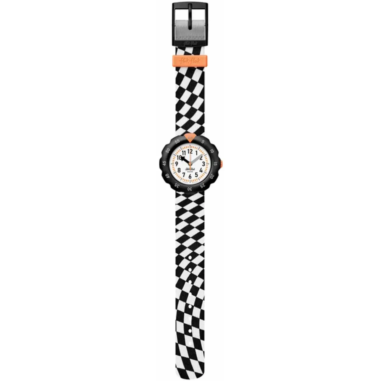 De FLIK FLAK RACE FLAG  is een stoer en kleurrijk horloge voor kinderen die houden van avontuur en snelheid. Met zijn analoge tijdaanduiding en quartz uurwerk ben je altijd op tijd voor de volgende race.