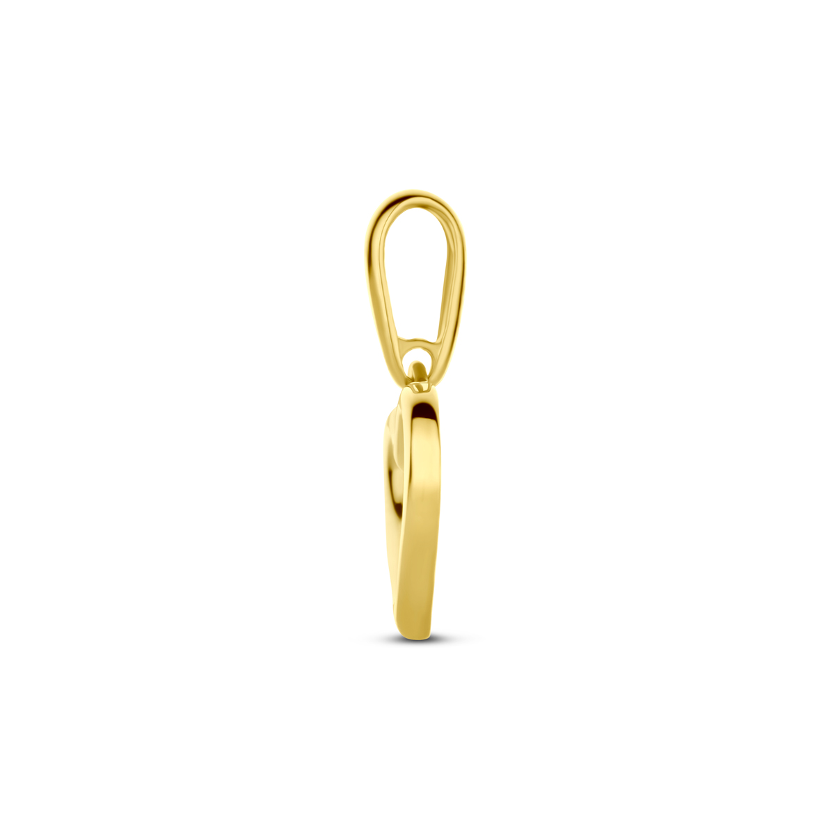 14k Geelgouden hanger uitgevoerd met een hart. De hanger heeft een  totale hoogte van 13.5mm.