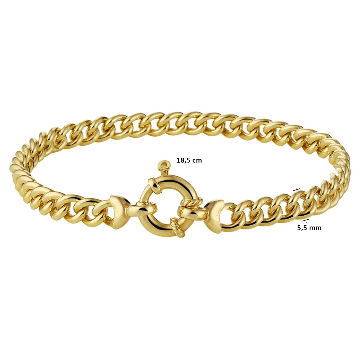 Sieraden van 14 karaat goud met daarin een kern van 925 zilver. Geelgouden armband met gourmette schakel. De schakelbreedte is 5.5mm.