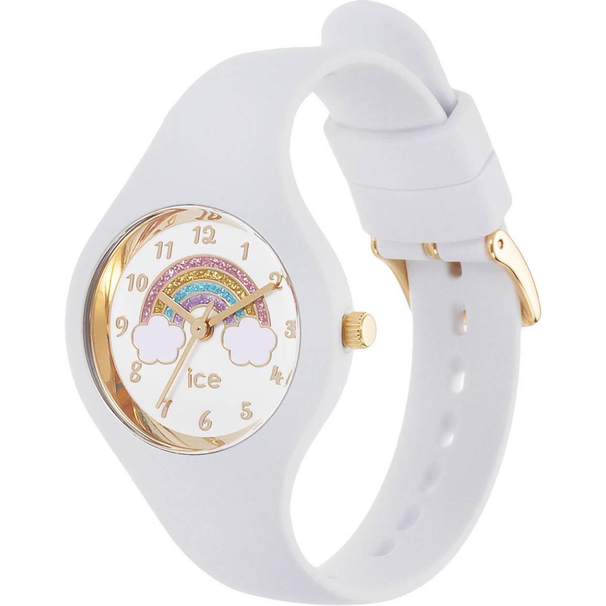 Trakteer jezelf op een regenboog van plezier met het ICE fantasia rainbow white-horloge! Dit vrouwelijke horloge met zijn kinderlijke stijl zal glitterliefhebbers van alle leeftijden bekoren. Dit schattige, sprookjesachtige witte horloge met ultrasoepele silicone band zal zowel kleine als grote meisjes doen wegdromen! De gouden afwerking en glinsterende regenboog zal je onmogelijk kunnen weerstaan.