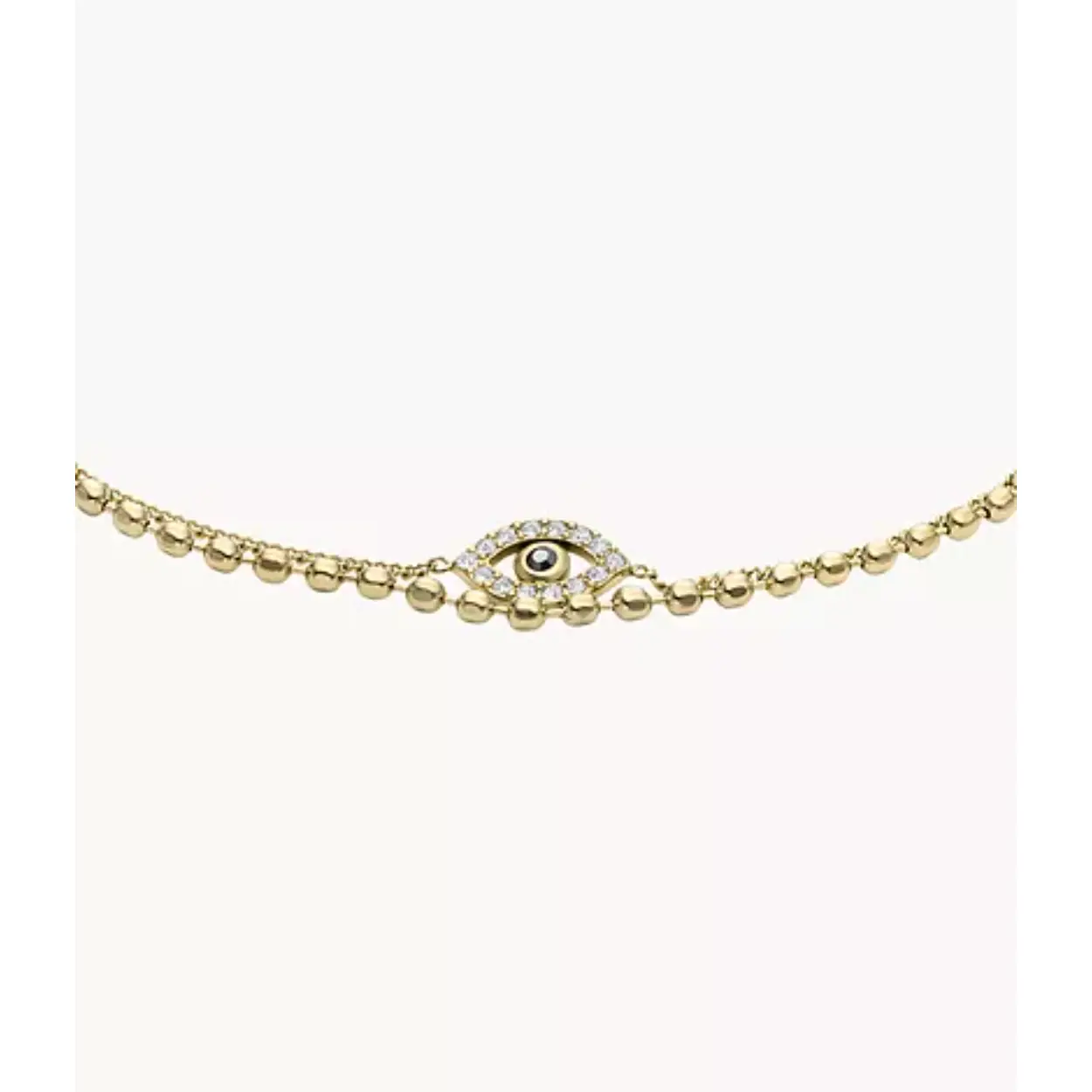 De Evil Eye-collectie bestaat uit dit sieraad in de stijl van een dubbele armband, gemaakt van verguld roestvrij staal en met subtiele kristalaccenten. Zo straal je positieve energie uit.