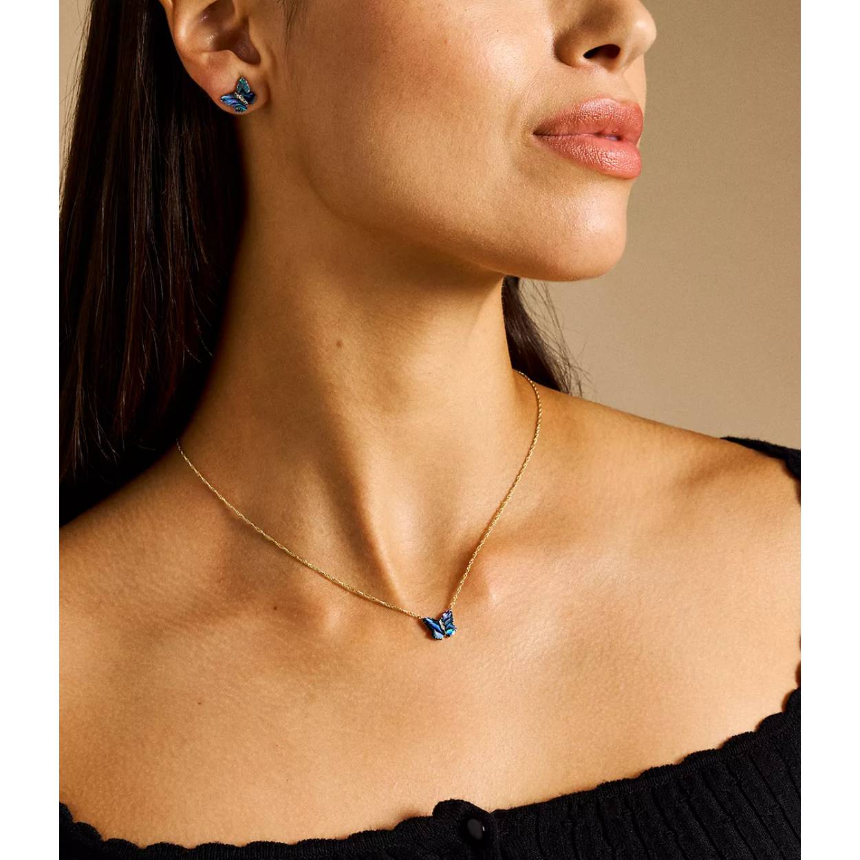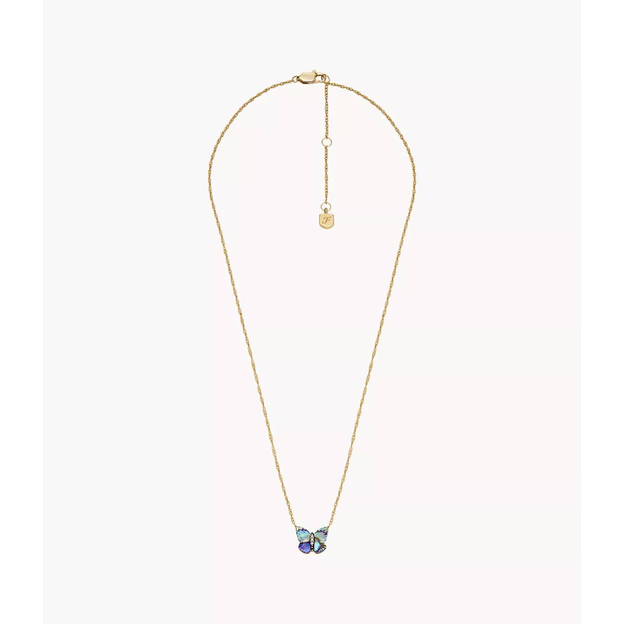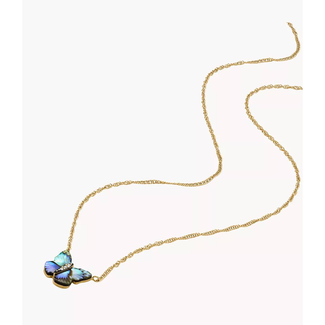 Symbolizing confidence and transformation, this beautiful necklace features an elegant butterfly crafted from genuine abalone shell with a textured finish and clear crystals on a gold-tone stainless steel chain.