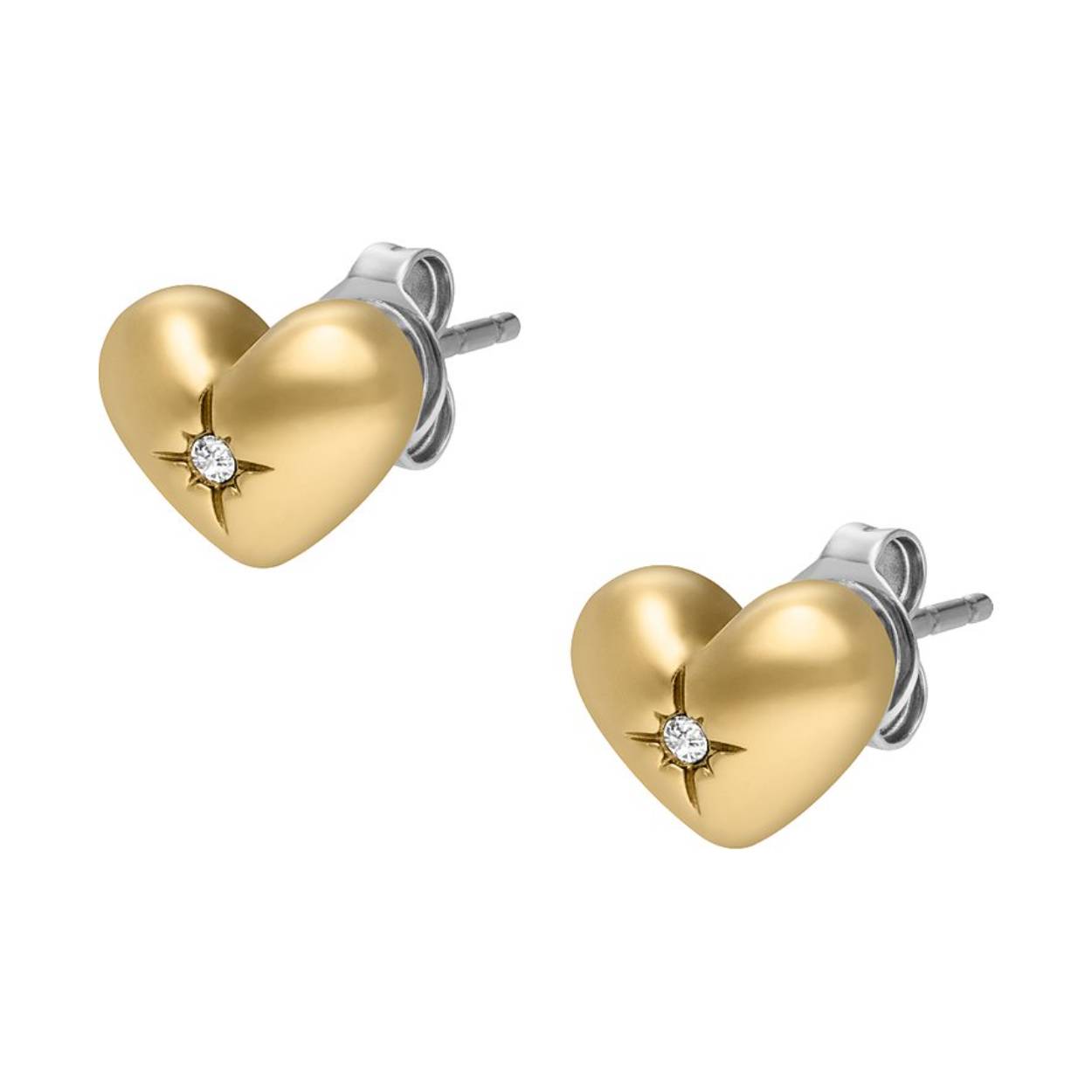 Celebrate love with the Sadie All My Love collection. These heart stud earrings feature a gleaming gold-tone stainless steel setting and sparkling clear glass stone accents. Simple yet eye-catching, they're the perfect everyday accessory to brighten your look. Wear them solo or mixed with other studs for an in-style layered ear.