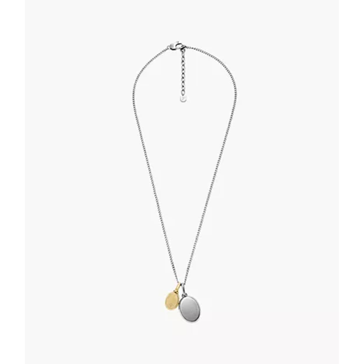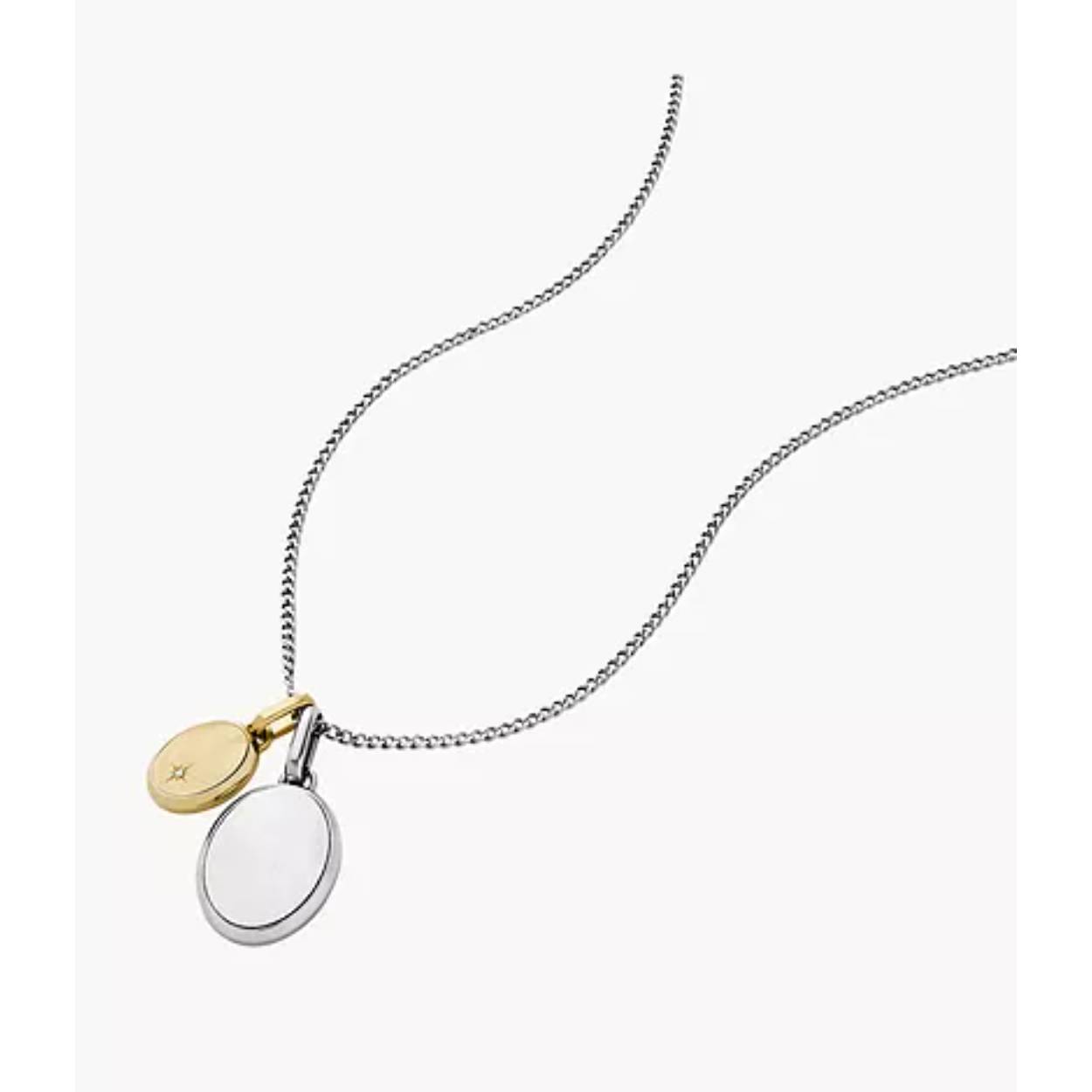 Engravable for your personal touch, our Drew pendant necklace balances mixed metals and modern design. The stainless steel oval pendant pairs a polished gold-tone front with a brushed silver back, a perfect canvas for engraving a meaningful message or initials. It's a timeless gift that's all about you.