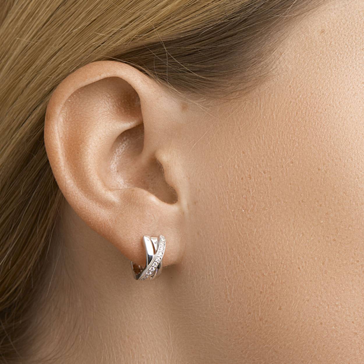Gerhodineerd zilveren klapoorringen met zirkonia. De klapoorringen zijn onderdeel van een set.