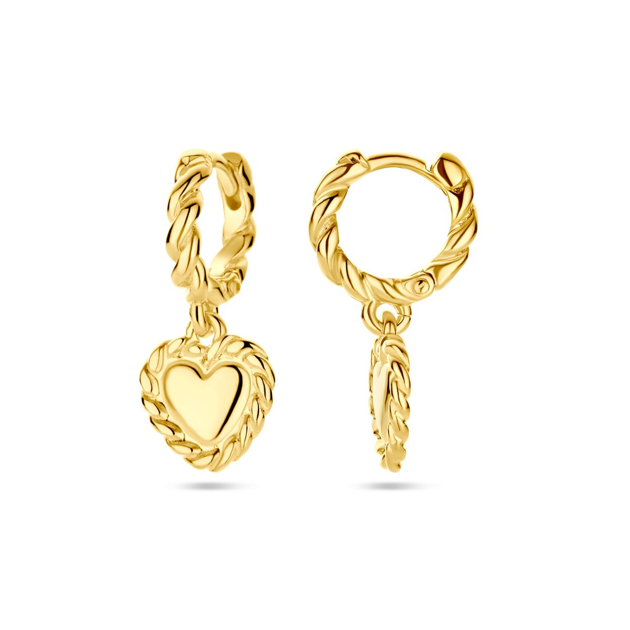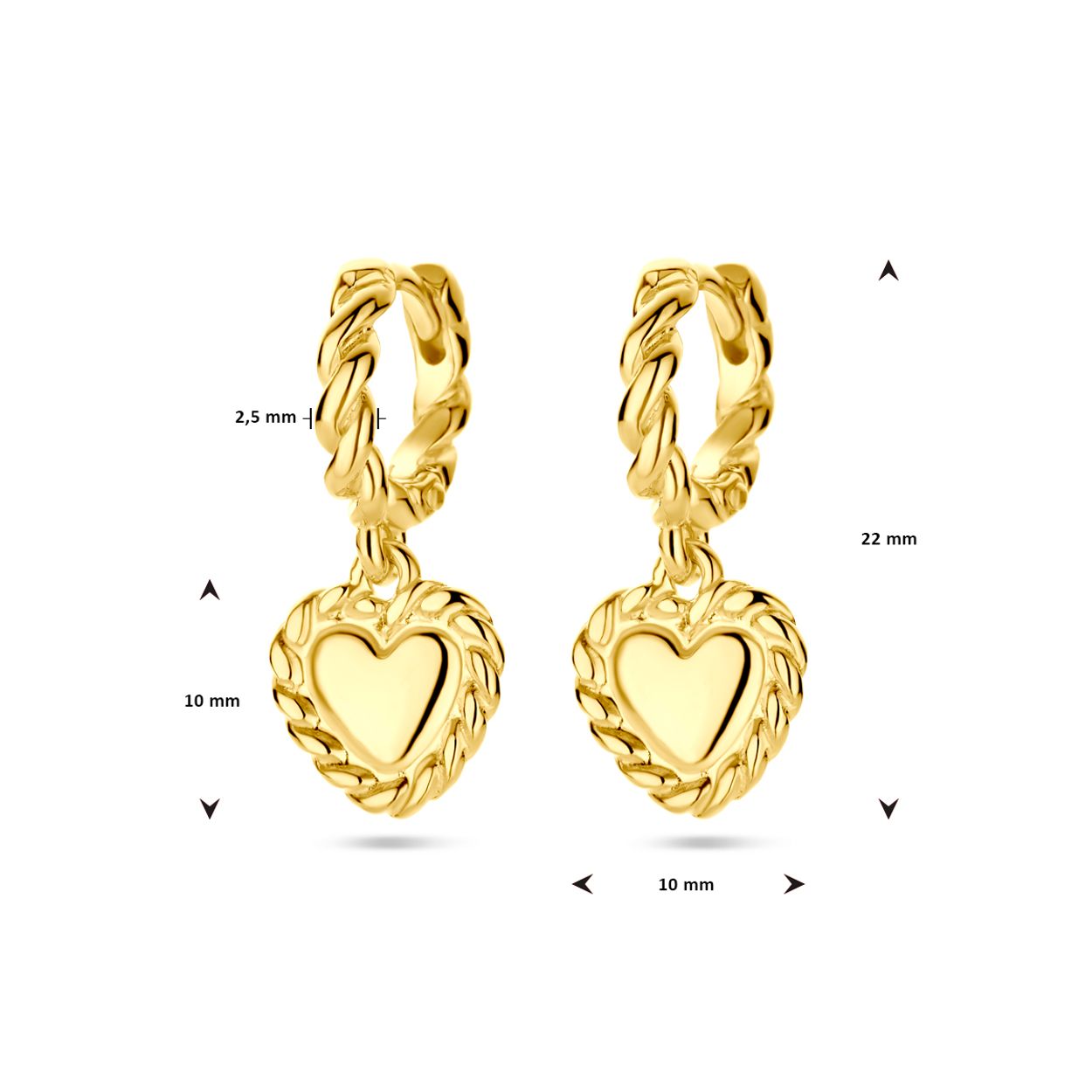 Verguld op 925 zilveren oorringen uitgevoerd met een hart. De oorringen hebben een totale hoogte van 22mm. Geen garantie op de plating.