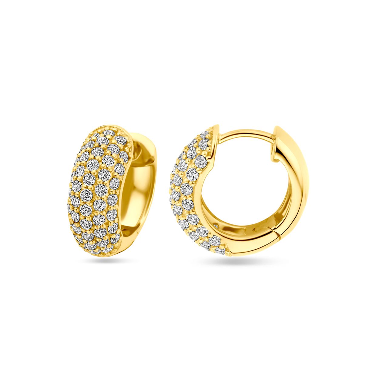 Verguld op 925 zilveren klapoorringen uitgevoerd met zirkonia. De klapoorringen hebben een afmeting van 16x6mm. Geen garantie op de plating.